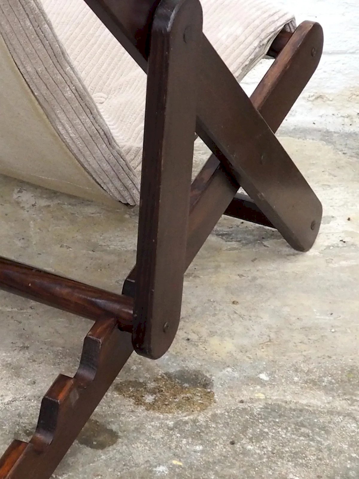 Adoptez ce transat Kontiki des années 60, signé Gillis Lundgren pour IKEA, qui incarne l'élégance scandinave vintage. Sa structure aux lignes organiques offre une assise généreuse et enveloppante, idéale pour un coin lecture ou une terrasse détendue, tandis que la housse refaite à neuf en velours à côtes larges couleur mastique apporte douceur et sobriété chromatique. Mélange de caractère rétro et de confort contemporain, il crée une ambiance chaleureuse et reposante. Bon état. Largeur : 80 cm Profondeur : 100 cm Hauteur : 80 cm Hauteur d'assise : 40 cm État:Occasion: Objet ayant été utilisé. Objet présentant quelques marques d'usure superficielle, ...Occasion: Objet ayant été utilisé. Objet présentant quelques marques d'usure superficielle, entièrement opérationnel et fonctionnant correctement. Il peut s'agir d'un modèle de démonstration ou d'un objet retourné en magasin après une courte période d'utilisation. les éventuelles imperfections. Couleur:Multicouleur Hauteur:Bois, Pin, Toile Largeur:Fauteuils et chauffeuses Marque:Debongout Type:Produit chiné Matériau:Bois, Pin, Toile Style:Contemporain