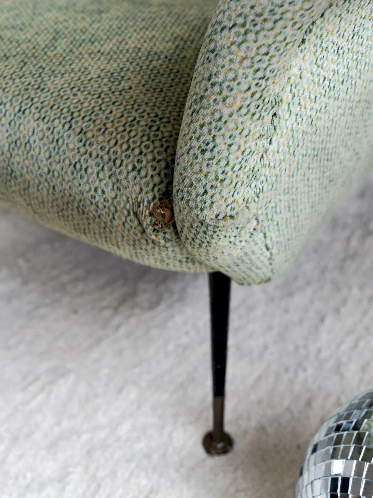 Adoptez ce fauteuil italien au revêtement vert moucheté, qui reprend l'esprit épuré et généreux de Marco Zanuso. Sa silhouette moderne et ses courbes enveloppantes invitent à la détente, tandis que son assise généreuse et son dossier accueillant promettent un confort durable. Conçu pour s'intégrer aussi bien dans un salon contemporain que dans un coin lecture rétro-chic, il apporte une touche de caractère grâce à son tissu texturé et sa structure affirmée. Il crée une atmosphère chaleureuse et élégante, idéale pour les intérieurs qui mêlent design et convivialité. Largeur : 78,5 cm Hauteur : 90 cm Hauteur d'assise : 38,5 cm Profondeur : 48 cm État:Occasion: Objet ayant été utilisé. Objet présentant quelques marques d'usure superficielle, ...Occasion: Objet ayant été utilisé. Objet présentant quelques marques d'usure superficielle, entièrement opérationnel et fonctionnant correctement. Il peut s'agir d'un modèle de démonstration ou d'un objet retourné en magasin après une courte période d'utilisation. les éventuelles imperfections. Couleur:Multicouleur Hauteur:Tissu Largeur:Fauteuils et chauffeuses Marque:Debongout Type:Produit chiné Matériau:Tissu Style:Contemporain