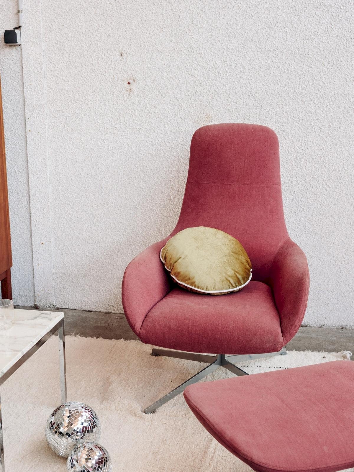 Ce fauteuil couleur framboise Zanotta modèle Kent, typique des années 70, est la pièce idéale pour ajouter une touche de couleur et de confort à votre intérieur ! Nous l'adorons pour son tissu d'origine et son design audacieux qui attire tous les regards. Accompagné de son pouf assorti, il apporte une note vintage propice à la détente, parfait pour un salon ou un espace de lecture moderne. Profondeur : 85 cm Largeur : 73 cm Hauteur : 110 cm Hauteur d'assise : 43 cm Dimensions pouf : 69 x 60 x 37 cm État:Occasion: Objet ayant été utilisé. Objet présentant quelques marques d'usure superficielle, ...Occasion: Objet ayant été utilisé. Objet présentant quelques marques d'usure superficielle, entièrement opérationnel et fonctionnant correctement. Il peut s'agir d'un modèle de démonstration ou d'un objet retourné en magasin après une courte période d'utilisation. les éventuelles imperfections. Couleur:Multicouleur Hauteur:Tissu Largeur:Fauteuils et chauffeuses Marque:Debongout Type:Produit chiné Matériau:Tissu Style:Contemporain