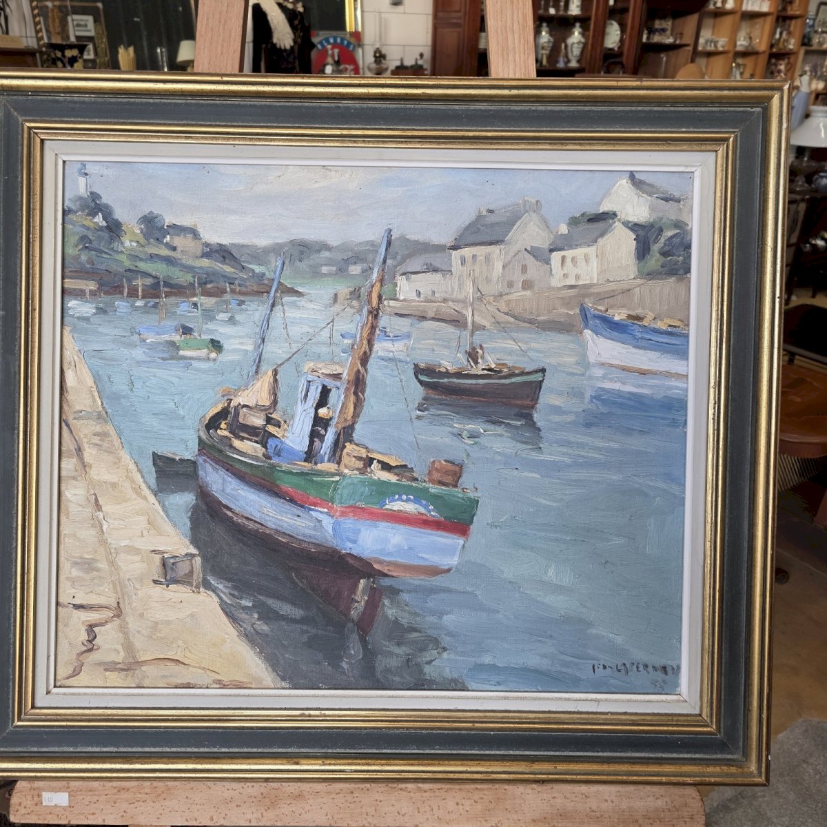 Jean Laperdrix 1912-2005 Huiles Sur Toile Marine. Port de doelan. Très bon état. Toile 56/46 cm. Cadre.70/60 cm. Signé jean laperdrix 56 Type:Huile Pays d'origine:France Style:1940-1960 Caractéristiques:Sur toile Thème:Paysage marin, Bateau