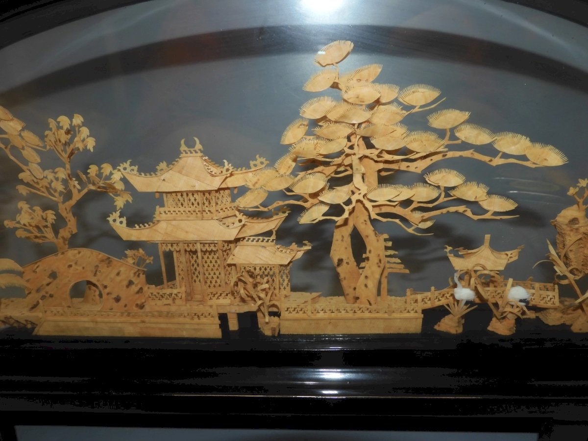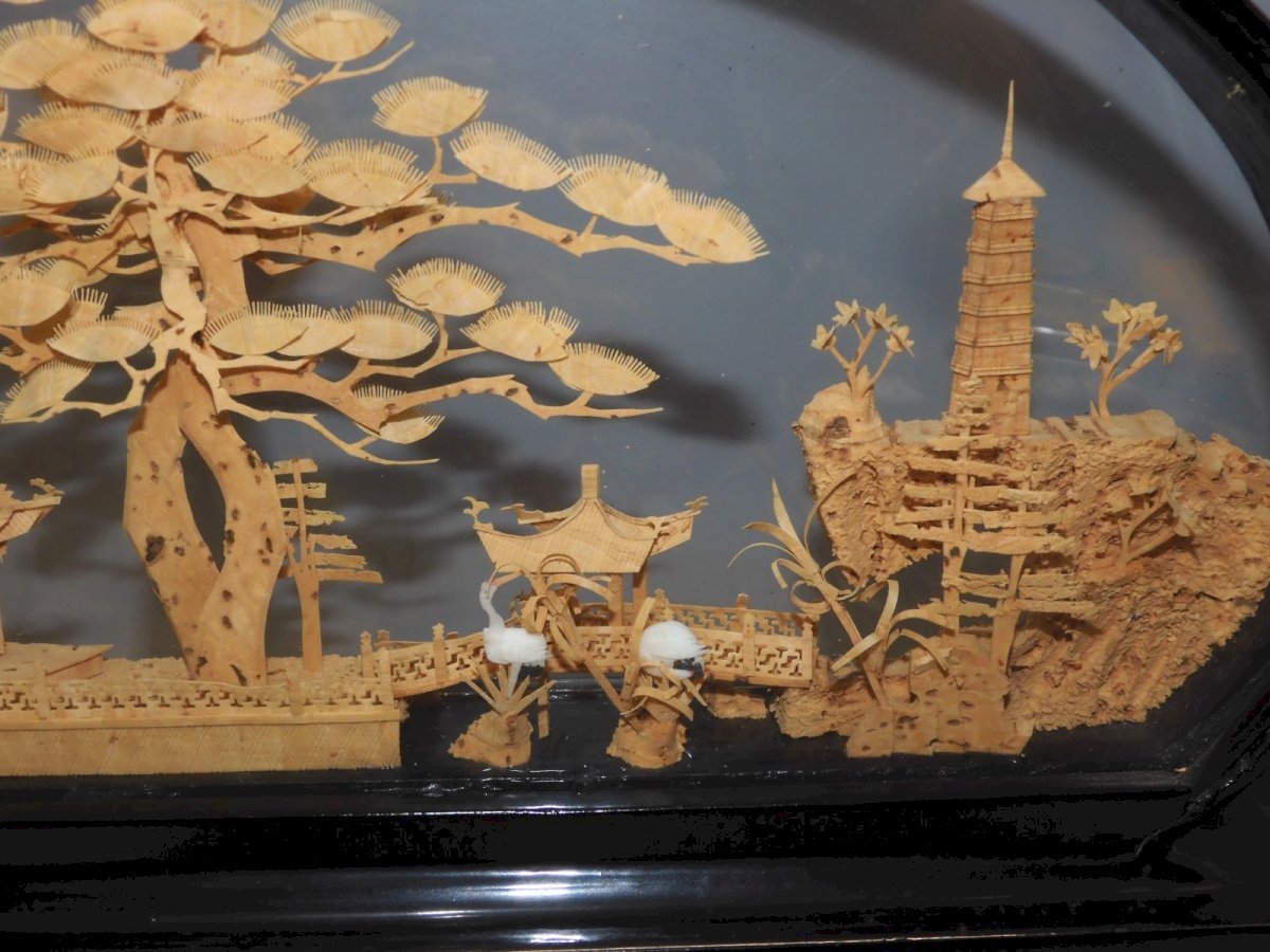 -JOLI ANCIEN DIORAMA REPUBLIQUE de CHINE BOIS Laqué et LIEGE déco D