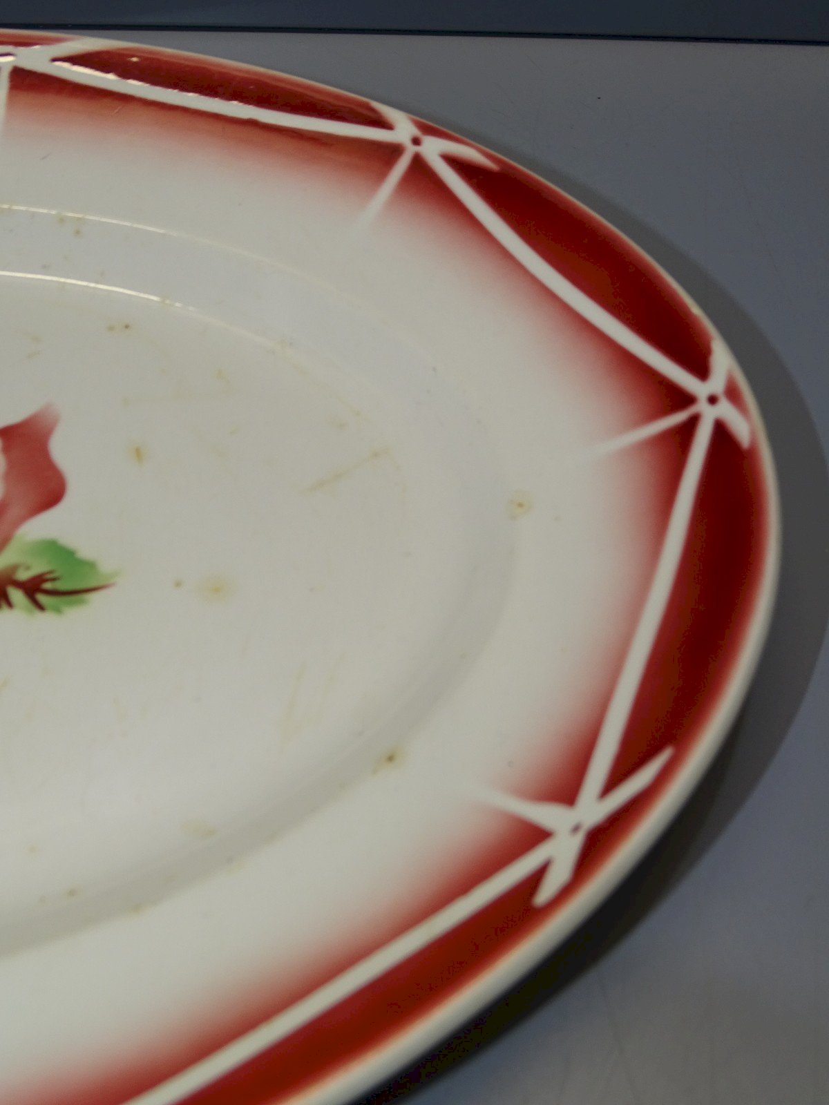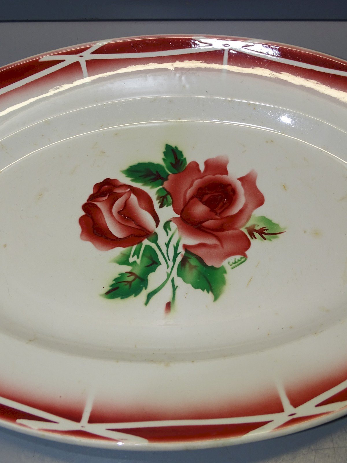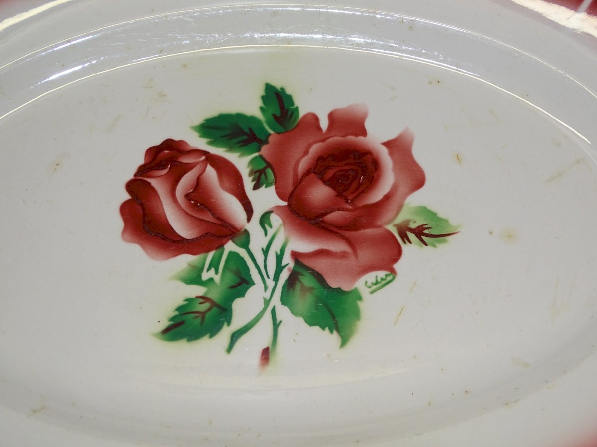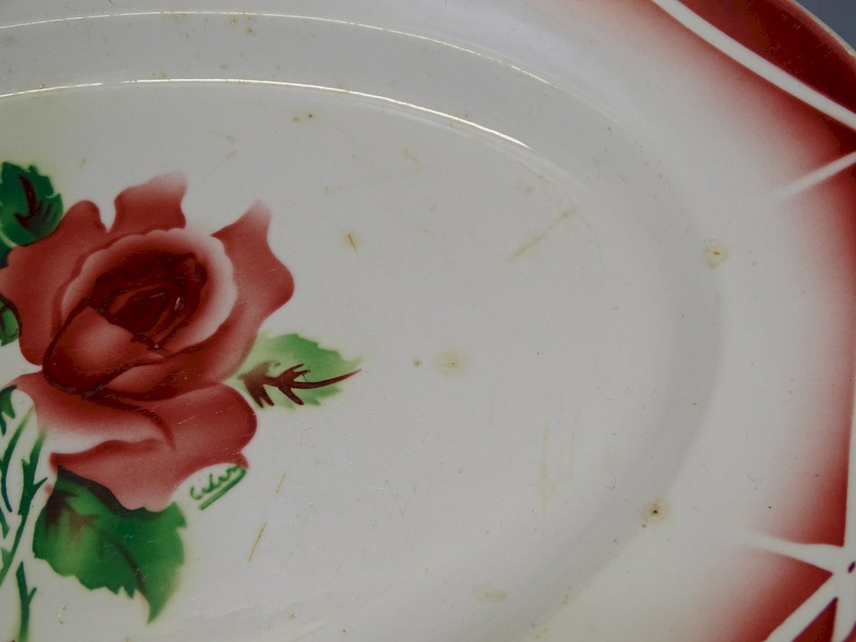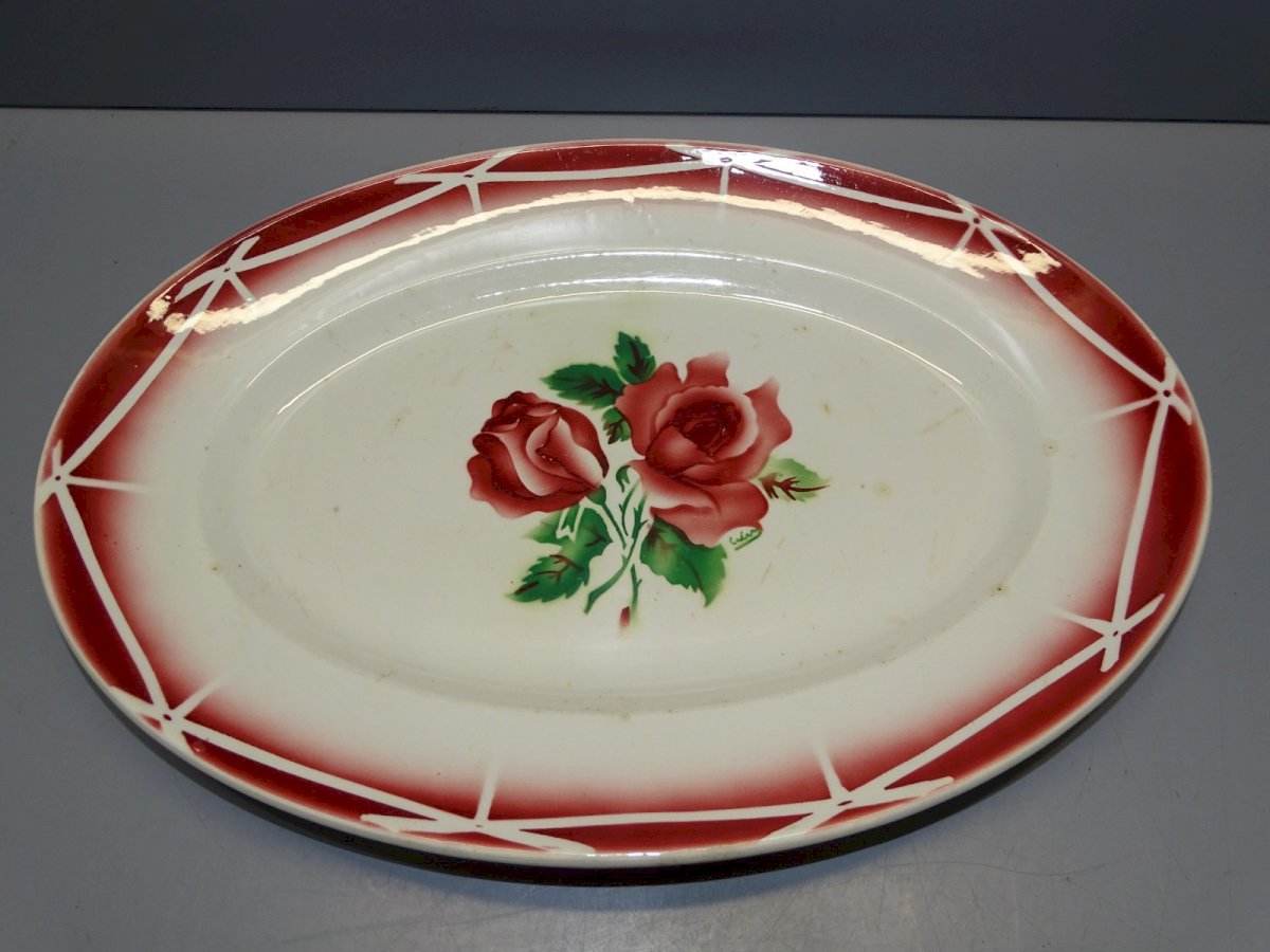 Joli ancien plat DIGOIN Sarreguemines modèle Cibon de forme ovale - avec 2 roses au centre - présence de traces d'usage et points couleur rouille  ( voir photos ) - Jus de trouvailles, sorti de grenier - Réf: 1V251219/69  - 36 x 26,3 cm - Poids 0,972 kg -   Pour toutes questions :  EXPEDITION POSSIBLE EN MONDIAL RELAY ou COLISSIMO sur demande TRES BON EMBALLAGE GARANTI       MERCI de BIEN REGARDER TOUTES les PHOTOS car ELLES FONT PARTIE INTEGRANTE de la DESCRIPTION et PERMETTENT de VOIR l'OBJET AU MIEUX  avec SES PETITS DEFAUTS EVENTUELS -