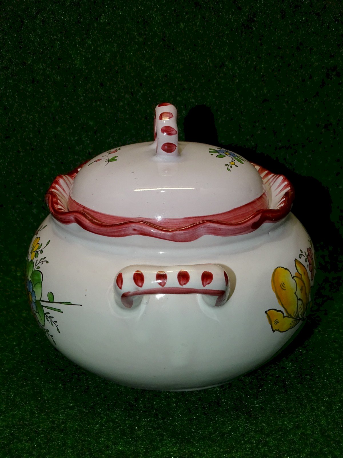 Joli ancien pot couvert bonbonnière céramique Rénoleau non marqué - dans son état de trouvailles - traces de calcaire à l'intérieur - bon état d'usage ( voir photos ) - jus de grenier - Réf. 1V240718/462 Longueur 16,5 cm - Hauteur max 12,5 cm - Diamètre 13,5 cm - Hauteur bord 8,6 cm - poids 478 g - Pour toutes questions : EXPEDITION POSSIBLE EN MONDIAL RELAY ou COLISSIMO sur demande TRES BON EMBALLAGE GARANTI MERCI de BIEN REGARDER TOUTES les PHOTOS car ELLES FONT PARTIE INTEGRANTE de la DESCRIPTION et PERMETTENT de VOIR l'OBJET AU MIEUX avec SES PETITS DEFAUTS EVENTUELS -
