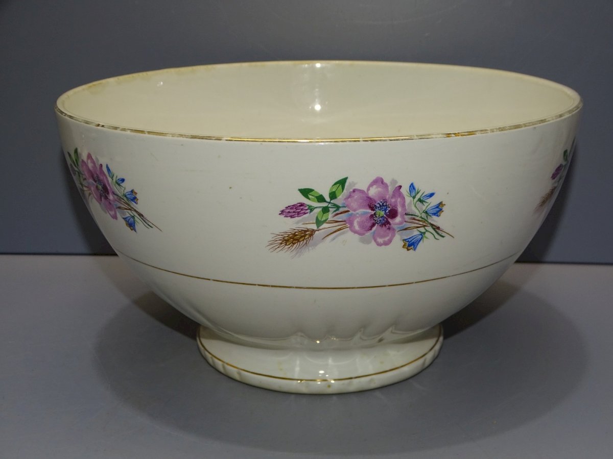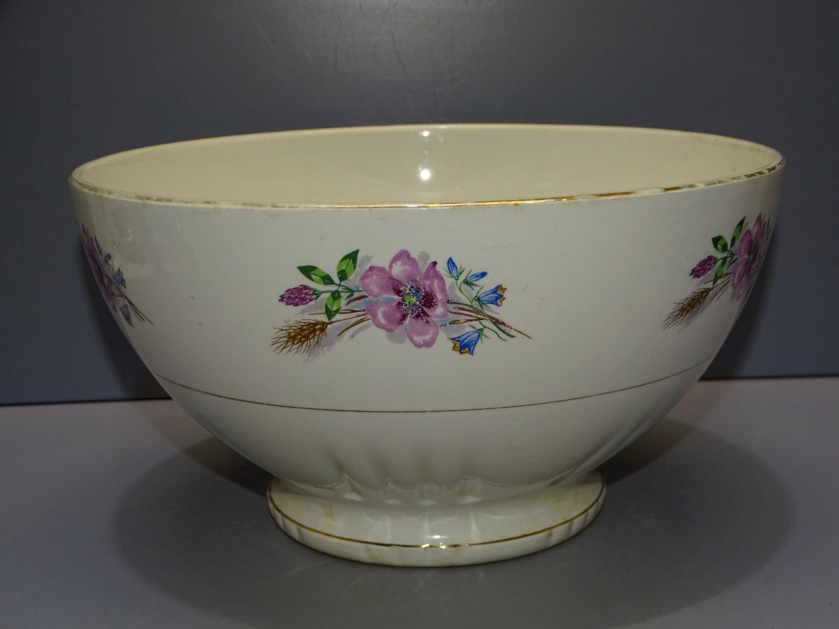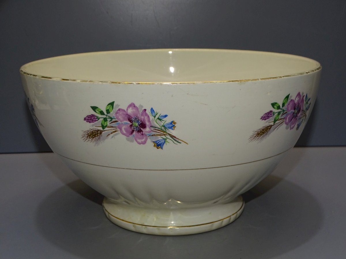 Joli ancien saladier céramique Moulin des Loups Vintage - dorure bordure usée et traces d'usage à l'intérieur ainsi que quelques points noircis - quelques petites traces sur le bord extérieur  ( voir photos ) - Jus de trouvailles, sorti de grenier - Réf: 1V251219/67  - Hauteur 13 cm - Diamètre 24 cm - Poids 1,191 kg -   Pour toutes questions :  EXPEDITION POSSIBLE EN MONDIAL RELAY ou COLISSIMO sur demande TRES BON EMBALLAGE GARANTI       MERCI de BIEN REGARDER TOUTES les PHOTOS car ELLES FONT PARTIE INTEGRANTE de la DESCRIPTION et PERMETTENT de VOIR l'OBJET AU MIEUX  avec SES PETITS DEFAUTS EVENTUELS -