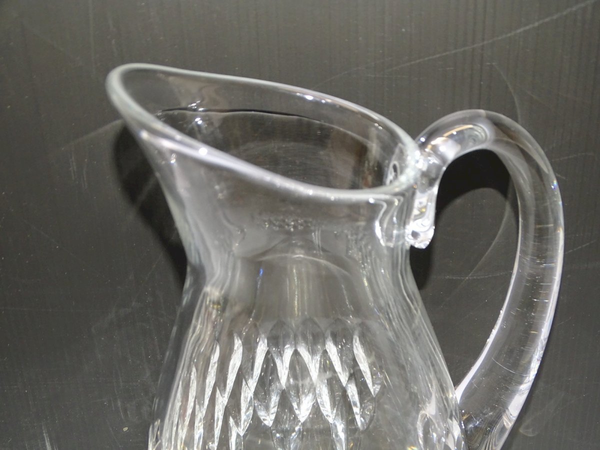 Joli broc à eau cristal de Baccarat estampillé en dessous - peut-être modèle carcassonne mais sous réserve - avec traces calcaire intérieur  et 2 micros rayures au bas - micros rayures de frottements en dessous  (voir photos )  jus de trouvailles, sorti de grenier - Réf. 1V250703/236 Hauteur 27 cm Longueur 16,5 cm - Poids 1,574 kg     Pour me contacter mon adresse mail : EXPEDITION POSSIBLE EN MONDIAL RELAY ou COLISSIMO sur demande TRES BON EMBALLAGE GARANTI     MERCI de BIEN REGARDER TOUTES les PHOTOS car ELLES FONT PARTIE INTEGRANTE de la DESCRIPTION et PERMETTENT de VOIR l'OBJET AU MIEUX  avec SES PETITS DEFAUTS EVENTUELS -