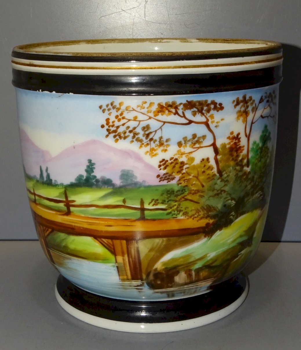 -JOLI CACHE POT PORCELAINE NAPOLEON III Décor lacustre et Paysage Pont D