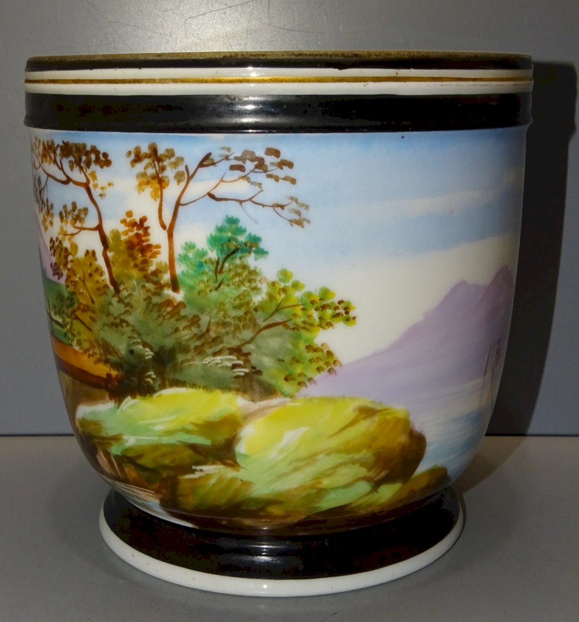 Joli cache pot porcelaine XIXe Napoléon III - joli décor lacustre, paysage et petit pont - traces de rouille au fond - petites usures de la couleur noire sur la frise du haut  ( voir photos ) - jus de trouvailles,  sorti de grenier, en bon état d'usage  -  Réf.42141025/3 -  Hauteur17 cm - Diamètre extérieur 17 cm et intérieur 15,9 cm -  Poids 1,024 kg   -  EXPEDITION en Mondial Relay OU Colissimo possible sur demande   EMBALLAGE GARANTI très protecteur  MERCI de BIEN REGARDER TOUTES les PHOTOS car ELLES FONT PARTIE INTEGRANTE de la DESCRIPTION et PERMETTENT de VOIR l'OBJET AU MIEUX -