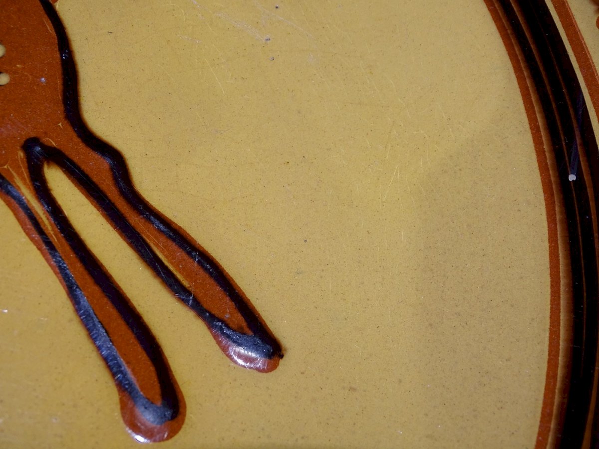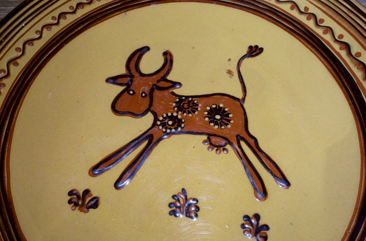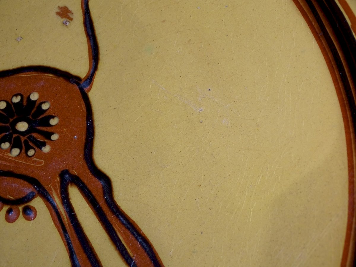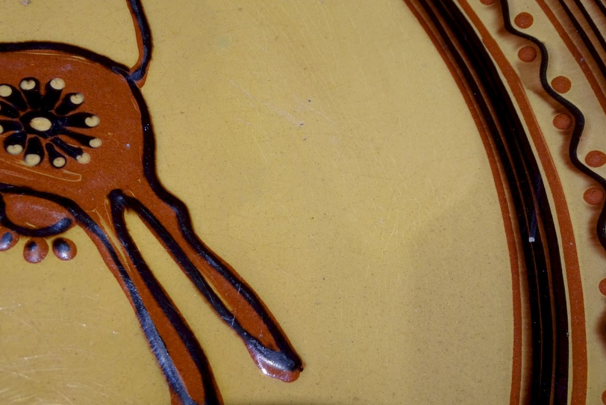 grand plat terre cuite émaillée peut-être alsacien - pas de marque visible - une vache au centre - avec quelques traces d'usage, rayures et usures d'usage - 1 trou pour l'accrocher au dos cassé ( voir photos ) - Jus de trouvailles, sorti de grenier, en bon état d'usage - Réf: 1V251219/85 - Diamètre 33 cm Hauteur 4,8 cm - Poids 1,4 kg - Pour toutes questions : EXPEDITION POSSIBLE EN MONDIAL RELAY ou COLISSIMO sur demande TRES BON EMBALLAGE GARANTI MERCI de BIEN REGARDER TOUTES les PHOTOS car ELLES FONT PARTIE INTEGRANTE de la DESCRIPTION et PERMETTENT de VOIR l'OBJET AU MIEUX avec SES PETITS DEFAUTS EVENTUELS -
