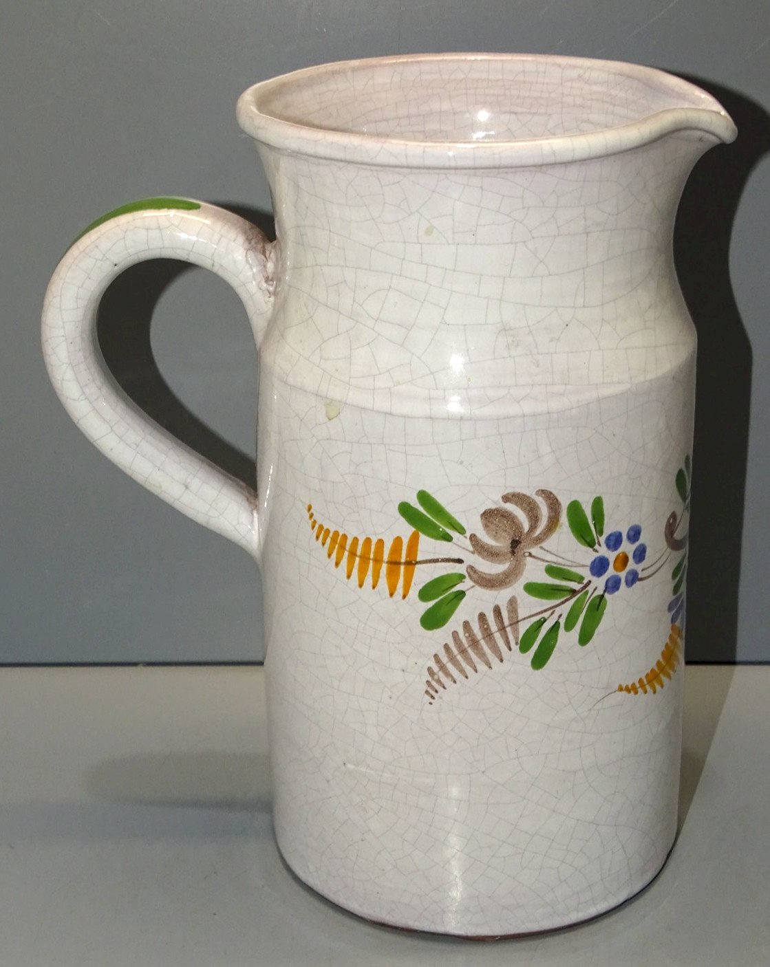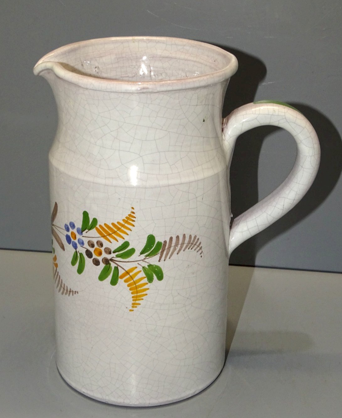 Joli pichet céramique La Salardaise HRG - avec un joli décor de craquelures feuilles de fougères et fleurs ( voir photos ) - jus de trouvailles, sorti de grenier - en très bon état d'usage - Réf.42141025/40 - Hauteur 19,2 cm - Longueur 16 cm - Diamètre bas 10,5 cm - Haut 11 x 10,5 cm - Poids 1 kg - EXPEDITION en Mondial Relay OU Colissimo possible sur demande EMBALLAGE GARANTI très protecteur MERCI de BIEN REGARDER TOUTES les PHOTOS car ELLES FONT PARTIE INTEGRANTE de la DESCRIPTION et PERMETTENT de VOIR l'OBJET AU MIEUX -