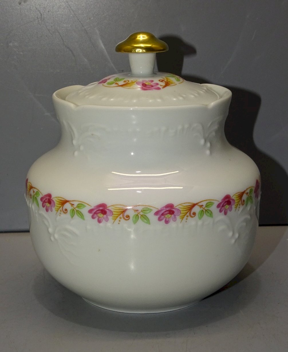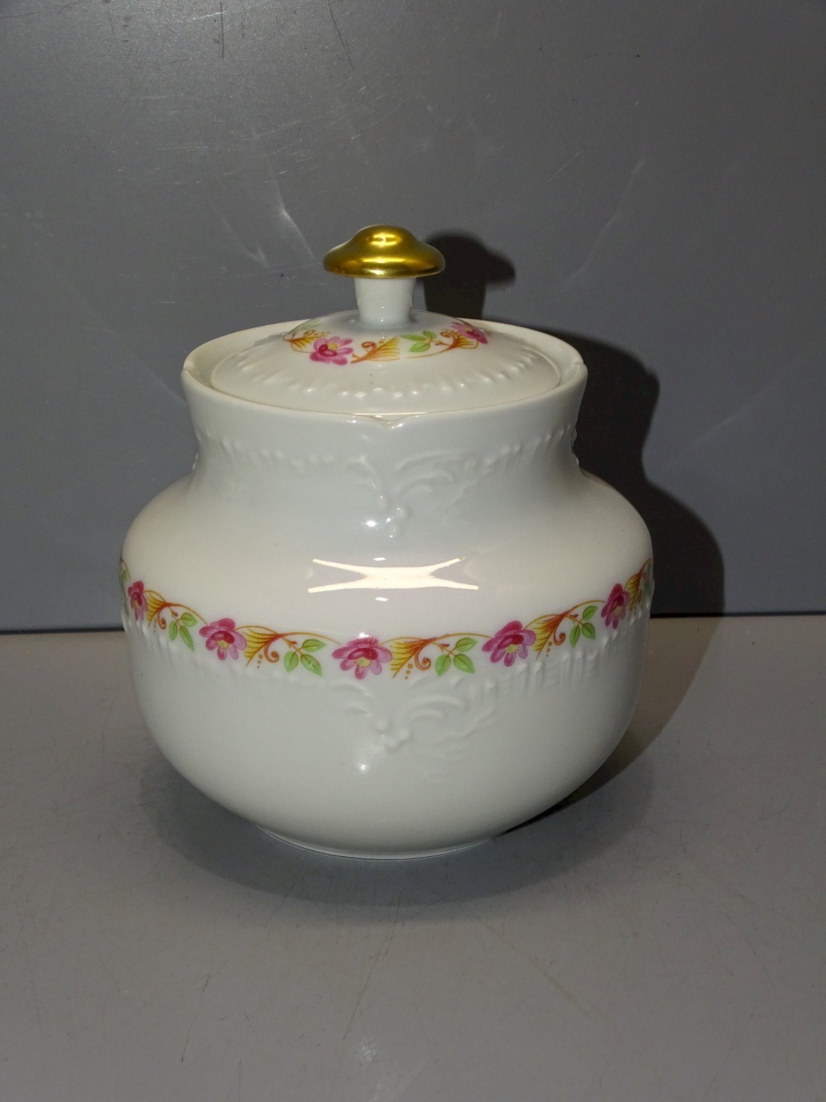 -JOLI POT SUCRIER PORCELAINE DE LIMOGES GUIRLANDE DE PETITES FLEURS D