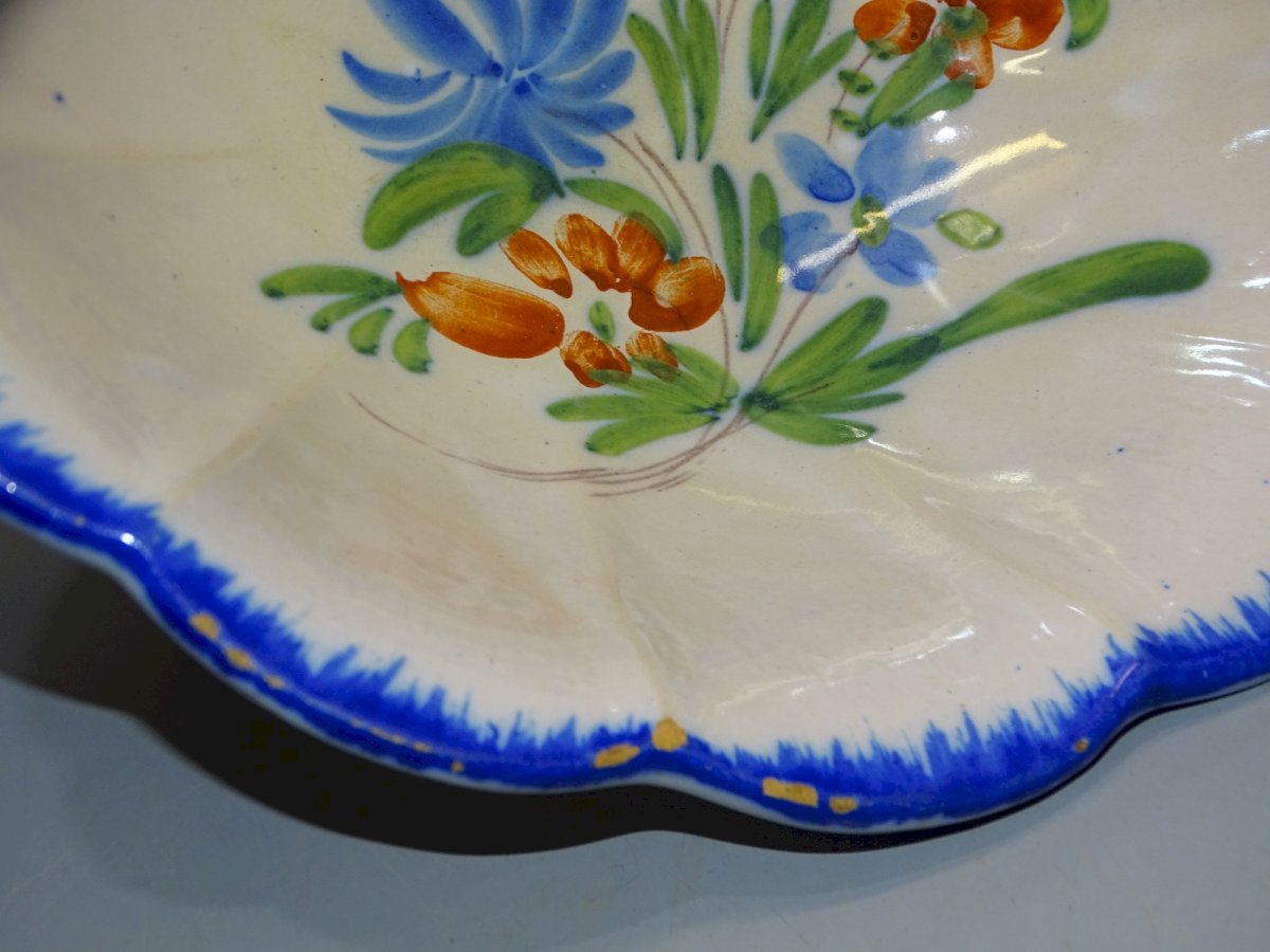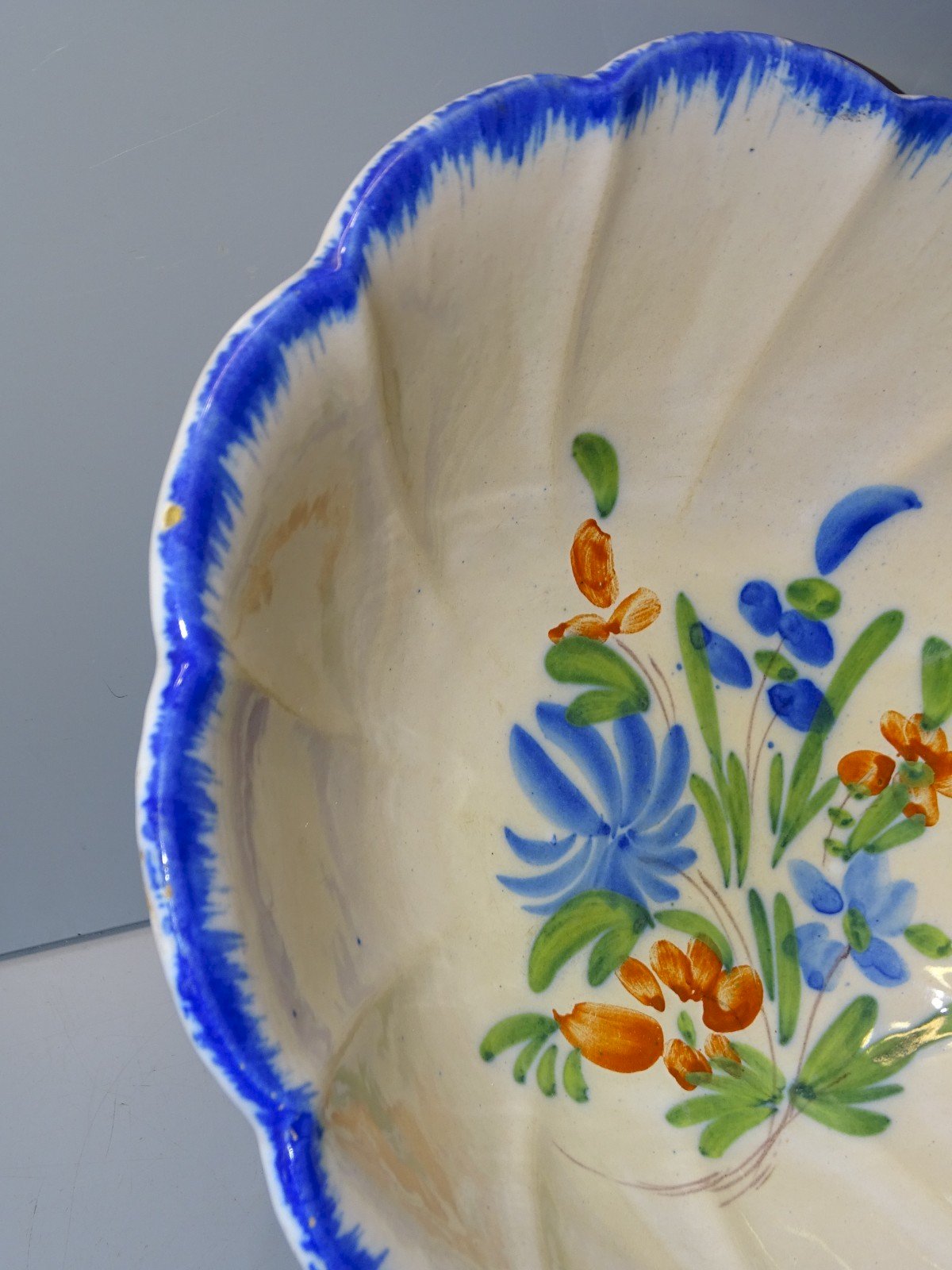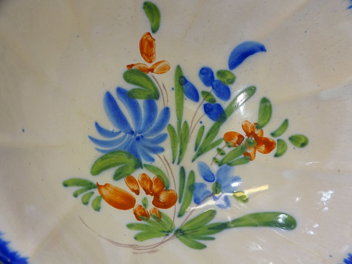 saladier ceramique XIXe décor bord peigne bleu des fleurs au fond - sauts d'émail sur le bord ( voir photos ) - En état d'usage, sorti de grenier - Réf: 1V251219/77 - Diamètre 26,5 cm Hauteur 9,5 cm - Poids 0,912 kg - Pour toutes questions : EXPEDITION POSSIBLE EN MONDIAL RELAY ou COLISSIMO sur demande TRES BON EMBALLAGE GARANTI MERCI de BIEN REGARDER TOUTES les PHOTOS car ELLES FONT PARTIE INTEGRANTE de la DESCRIPTION et PERMETTENT de VOIR l'OBJET AU MIEUX avec SES PETITS DEFAUTS EVENTUELS -