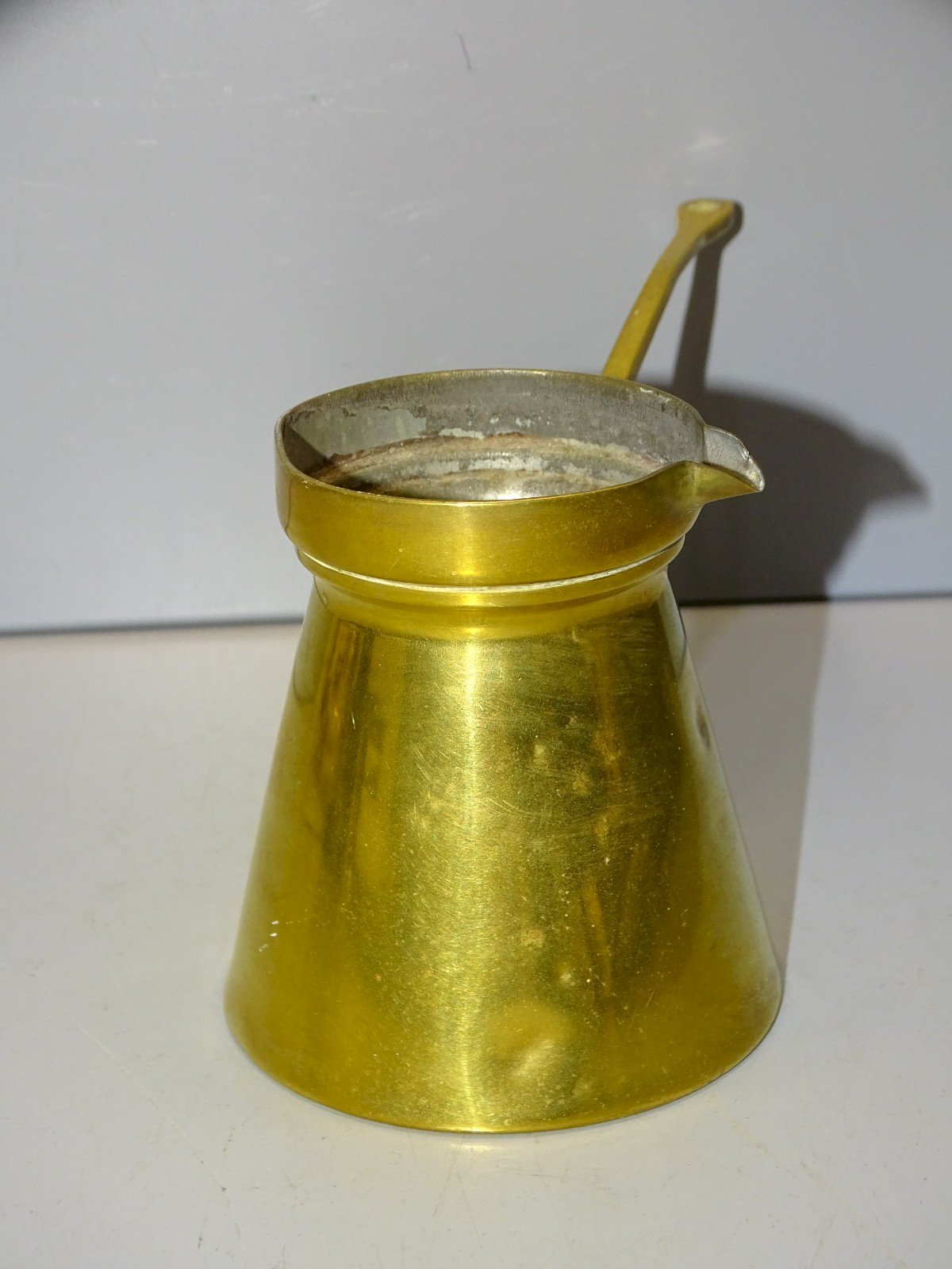 Jolie ancienne cafetière en laiton intérieur étamé, marque en dessous peut être Unis France - avec petits chocs d'usage  ( voir photos ) - En  état d'usage, sortie de grenier - Réf: 1V251219/49  - Hauteur 8,2 cm  - Longueur 17 cm - Diamètre bas 7,8 cm - Diamètre Haut 5,6 cm - Poids 0,130 kg -   Pour toutes questions :  EXPEDITION POSSIBLE EN MONDIAL RELAY ou COLISSIMO sur demande TRES BON EMBALLAGE GARANTI       MERCI de BIEN REGARDER TOUTES les PHOTOS car ELLES FONT PARTIE INTEGRANTE de la DESCRIPTION et PERMETTENT de VOIR l'OBJET AU MIEUX  avec SES PETITS DEFAUTS EVENTUELS - État:Occasion: Objet ayant été utilisé. Consulter la description du vendeur pour avoir plus de détails ...Occasion: Objet ayant été utilisé. les éventuelles imperfections.