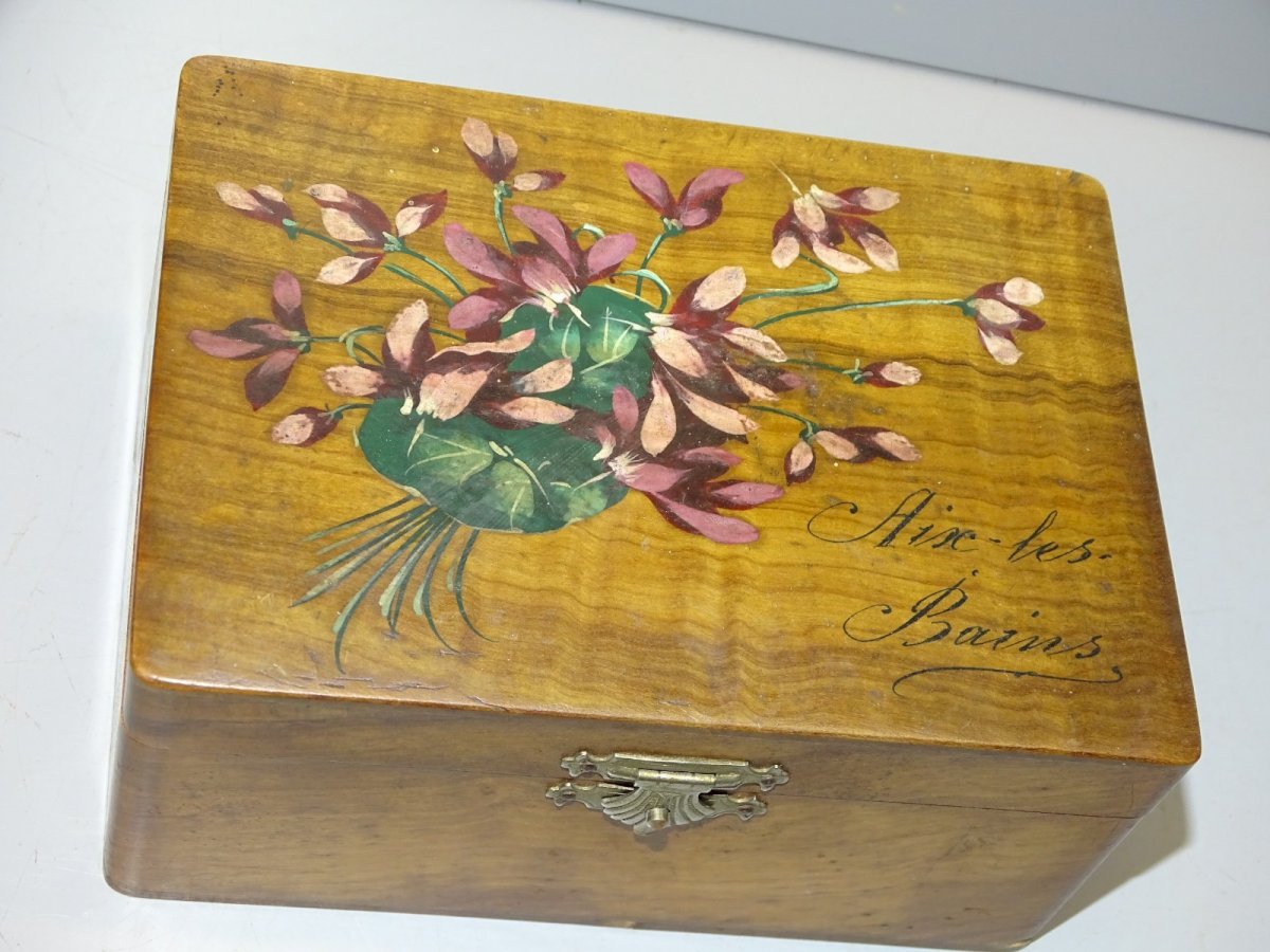 -JOLIE BOITE A BIJOUX COFFRET BOIS OLIVIER SOUVENIR AIX LES BAINS VIOLETTES D