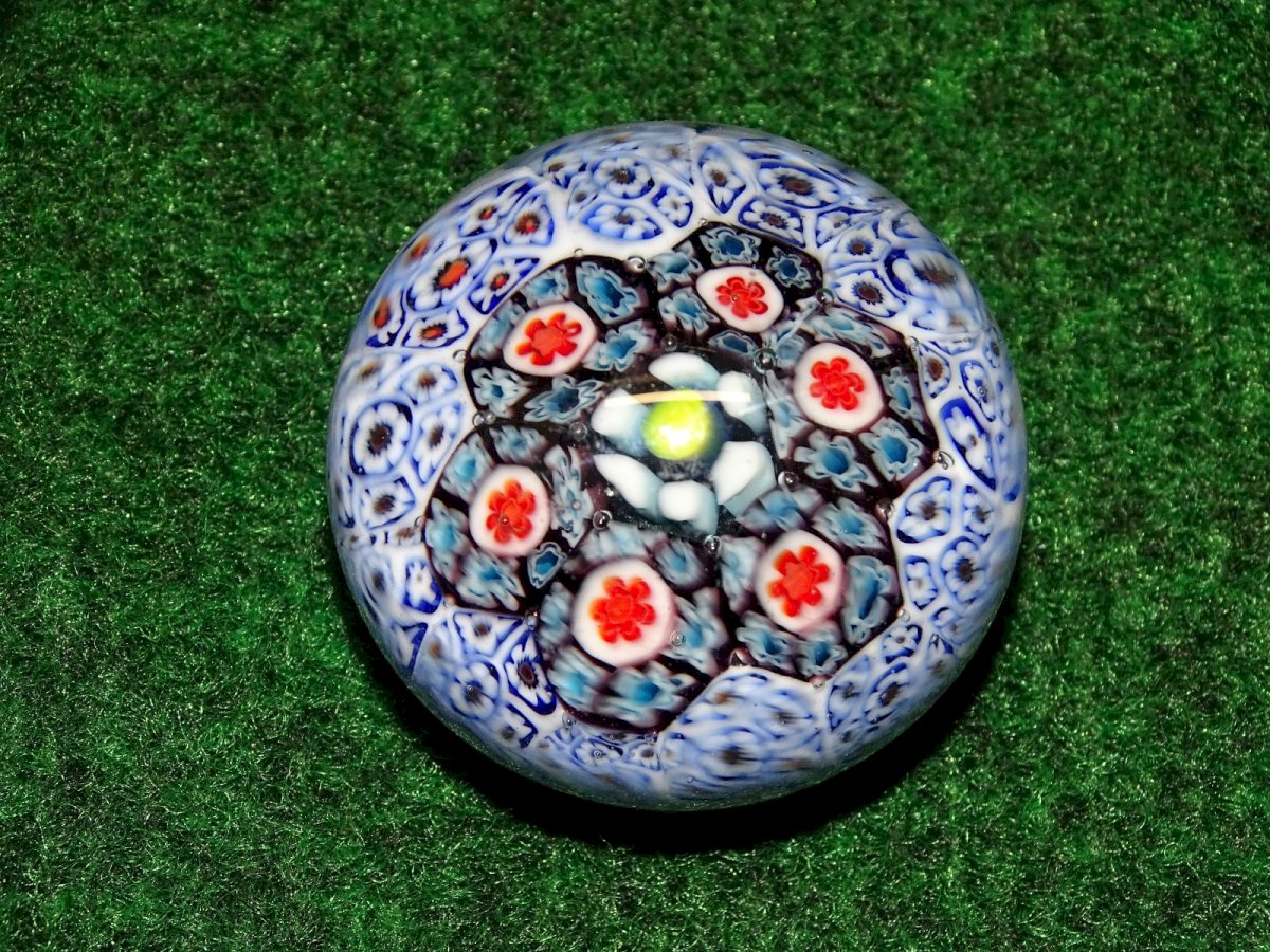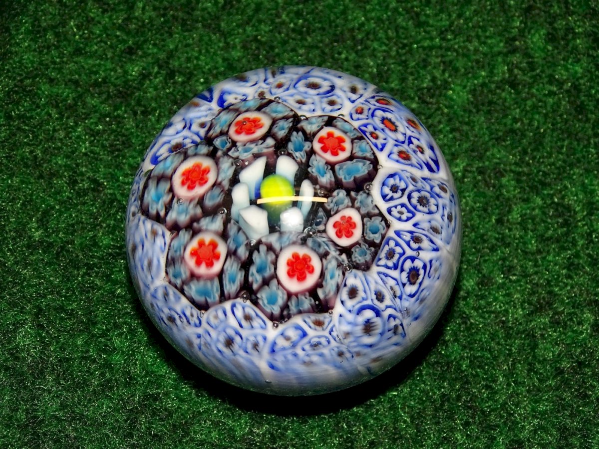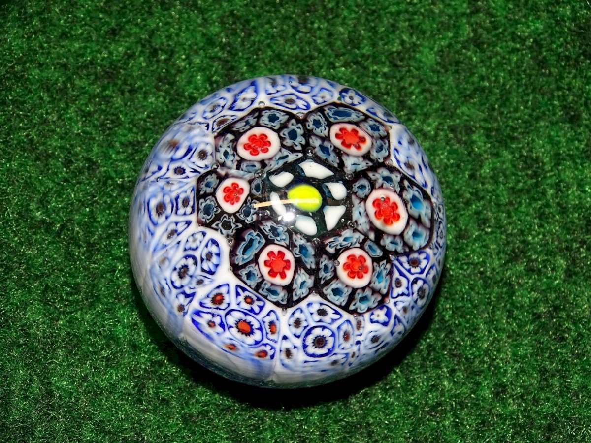 jolie petite boule presse papier millefiori - quelques petites traces sur le dessus - jus de trouvailles - en bon état d'usage (voir photos) - Réf. 1V240718/466 - Diamètre 4,74 cm - Hauteur 3,66 cm - Poids 123 g - Pour me contacter mon adresse mail : EXPEDITION POSSIBLE EN MONDIAL RELAY ou COLISSIMO sur demande TRES BON EMBALLAGE GARANTI MERCI de BIEN REGARDER TOUTES les PHOTOS car ELLES FONT PARTIE INTEGRANTE de la DESCRIPTION et PERMETTENT de VOIR l'OBJET AU MIEUX avec SES PETITS DEFAUTS EVENTUELS -