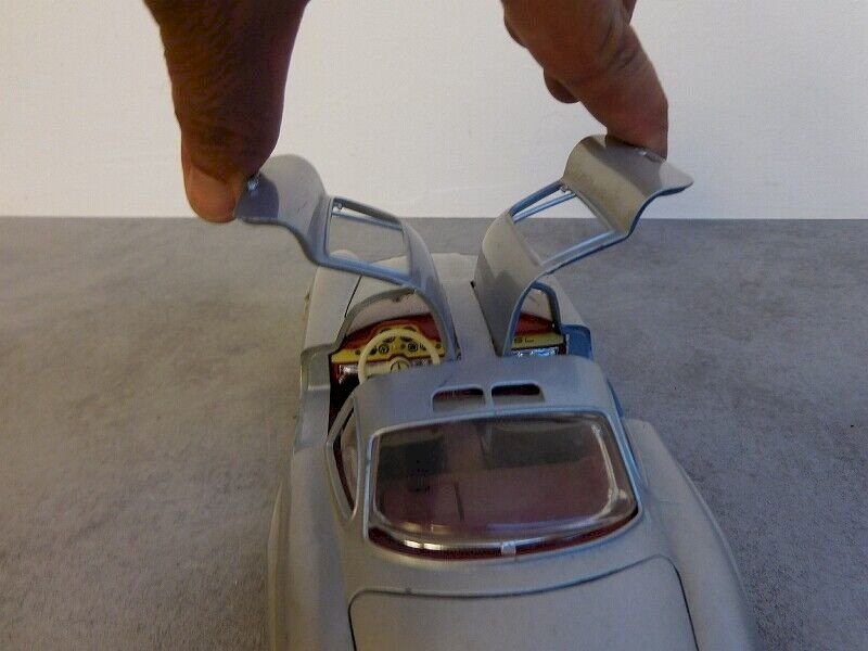 joli jouet voiture Mercédès  300 SL Urago 1.16 elle est en bon état il lui manque quelques pièces elle mesure 24.5 cm de long sur 10 cm de large et 7.5 cm de haut État:Occasion: Objet ayant été utilisé. Consulter la description du vendeur pour avoir plus de détails ...Occasion: Objet ayant été utilisé. les éventuelles imperfections. Véhicule/engin:Voitures Type:Jouets Mécaniques
