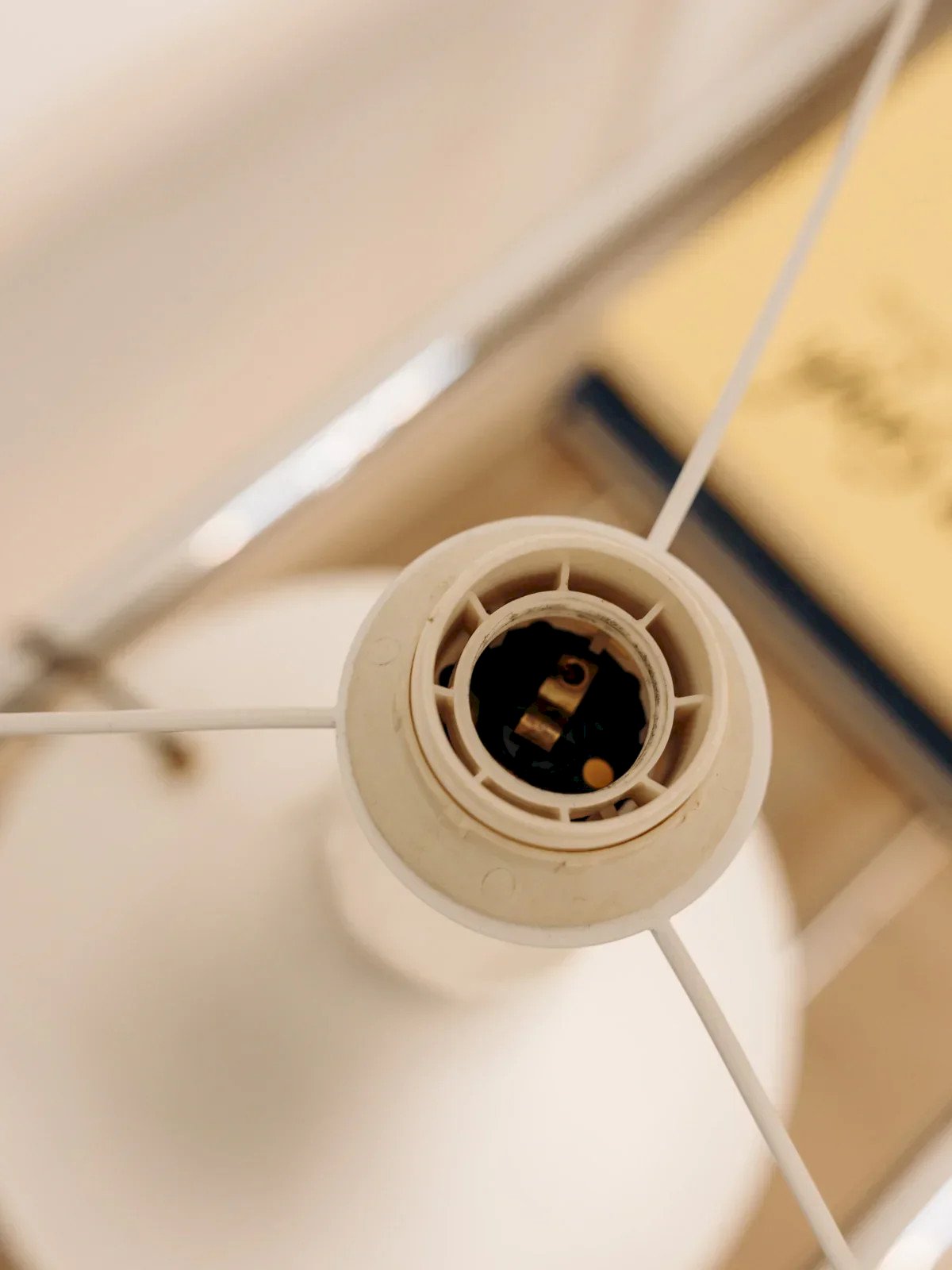 Ajoutez une touche d'élégance artisanale à votre intérieur avec notre lampe au pied en plâtre et son abat-jour en bouclette. Son design unique allie une esthétique moderne à un savoir-faire traditionnel, créant une ambiance douce et chaleureuse. Idéale pour illuminer vos espaces de vie, elle s'intègre parfaitement dans tous les styles de décoration. Apportez une note de caractère à votre intérieur avec cette pièce exceptionnelle. Refaite à neuf. Hauteur : 59 cm Hauteur du pied : 40 cm Diamètre de l'abat-jour : 37 cm État:Occasion: Objet ayant été utilisé. Objet présentant quelques marques d'usure superficielle, ...Occasion: Objet ayant été utilisé. Objet présentant quelques marques d'usure superficielle, entièrement opérationnel et fonctionnant correctement. Il peut s'agir d'un modèle de démonstration ou d'un objet retourné en magasin après une courte période d'utilisation. les éventuelles imperfections. Marque:Debongout Type:Produit chiné Vintage:Oui Style:Contemporain