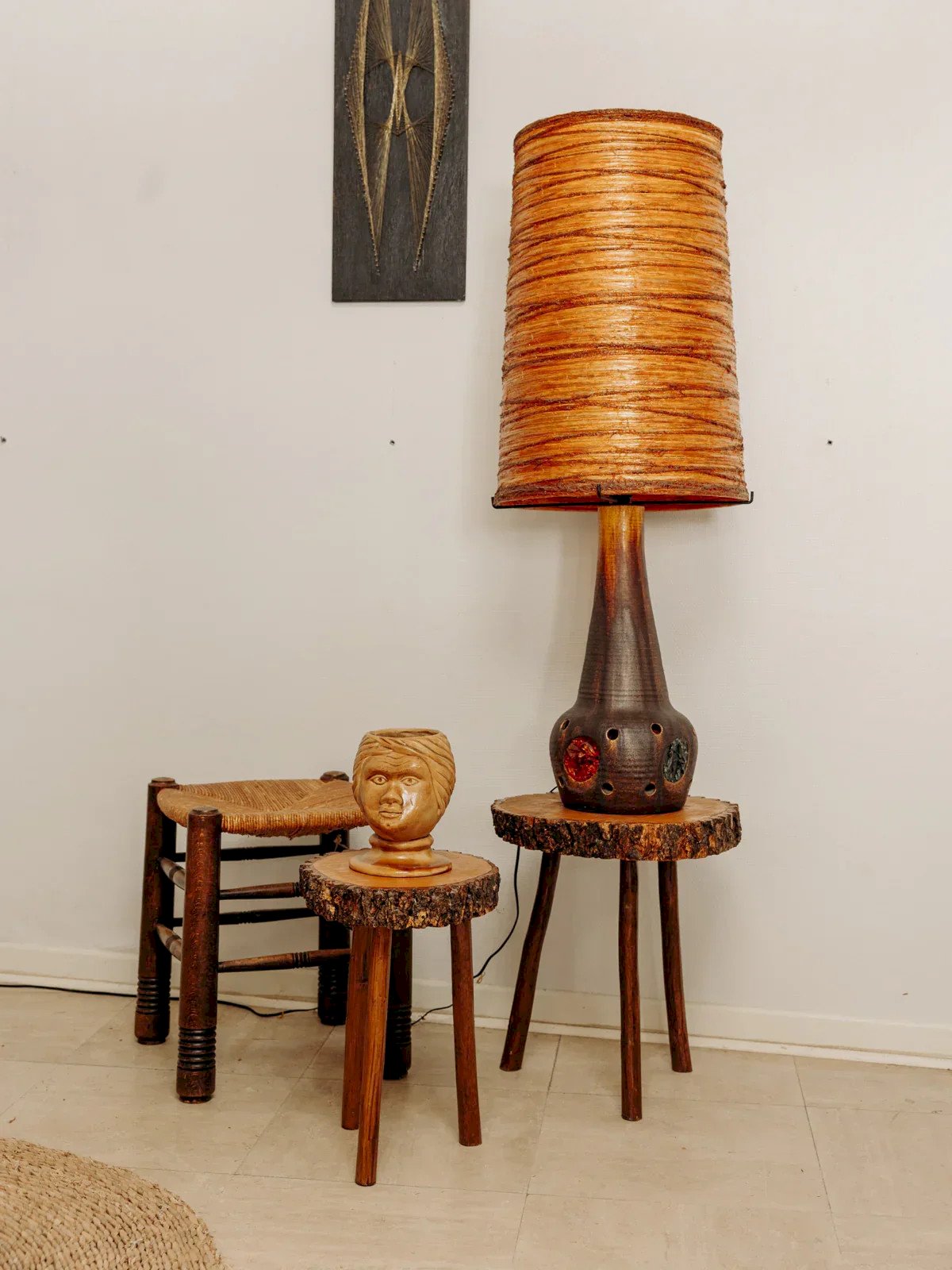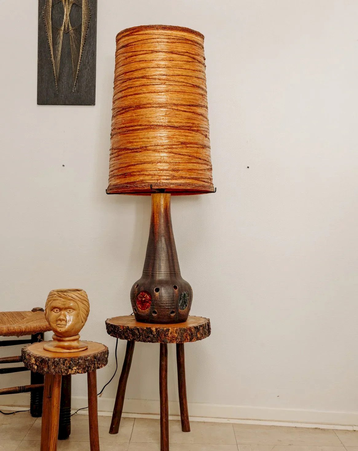 Découvrez cette magnifique lampe de sol en céramique, œuvre emblématique de Georges Pelletier pour Accolay, datant des années 70. Avec sa riche incrustation de cristaux de verre aux teintes vertes et marron, elle ajoute une touche vintage et artistique à votre intérieur. Son abat-jour d'origine en résine orange souligne son caractère authentique, tandis que son double éclairage assure une ambiance chaleureuse. Un incontournable pour les amateurs de design rétro. Hauteur totale : 110 cm Diamètre de l'abat-jour : 40 cm État:Occasion: Objet ayant été utilisé. Objet présentant quelques marques d'usure superficielle, ...Occasion: Objet ayant été utilisé. Objet présentant quelques marques d'usure superficielle, entièrement opérationnel et fonctionnant correctement. Il peut s'agir d'un modèle de démonstration ou d'un objet retourné en magasin après une courte période d'utilisation. les éventuelles imperfections. Marque:Debongout Type:Produit chiné Vintage:Oui Style:Contemporain