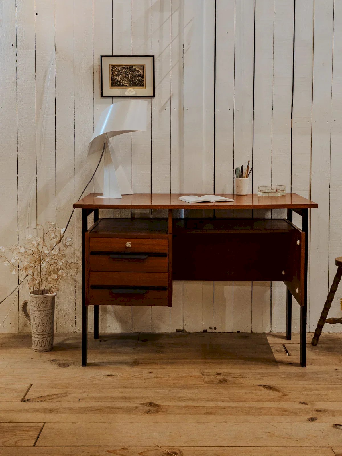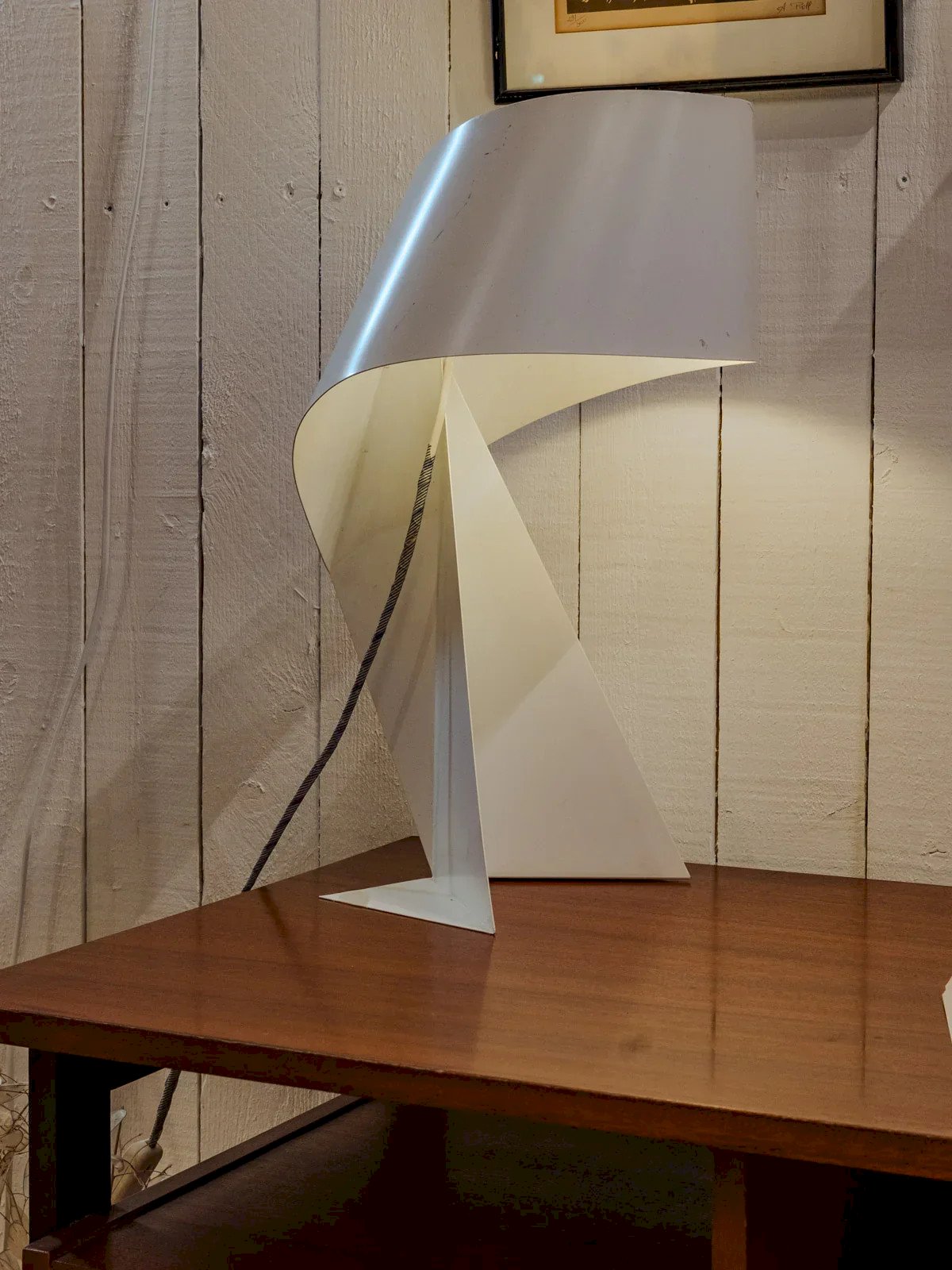 Apportez une lumière douce et graphique avec cette lampe à poser style cocotte des années 90, en métal laqué blanc au dessin épuré. Sa silhouette élancée et son format en font une compagne idéale pour une table de chevet, un bureau ou une console, tandis que l'interrupteur intégré facilite son usage au quotidien. Le laqué offre une finition lumineuse et sobre qui s'intègre à des intérieurs contemporains comme vintage. Quelques traces du temps présentes. Longueur : 18 cm Largeur : 15 cm Hauteur : 49 cm État:Occasion: Objet ayant été utilisé. Objet présentant quelques marques d'usure superficielle, ...Occasion: Objet ayant été utilisé. Objet présentant quelques marques d'usure superficielle, entièrement opérationnel et fonctionnant correctement. Il peut s'agir d'un modèle de démonstration ou d'un objet retourné en magasin après une courte période d'utilisation. les éventuelles imperfections. Marque:Debongout Type:Produit chiné Style:Contemporain Matériau:Métal Vintage:Oui