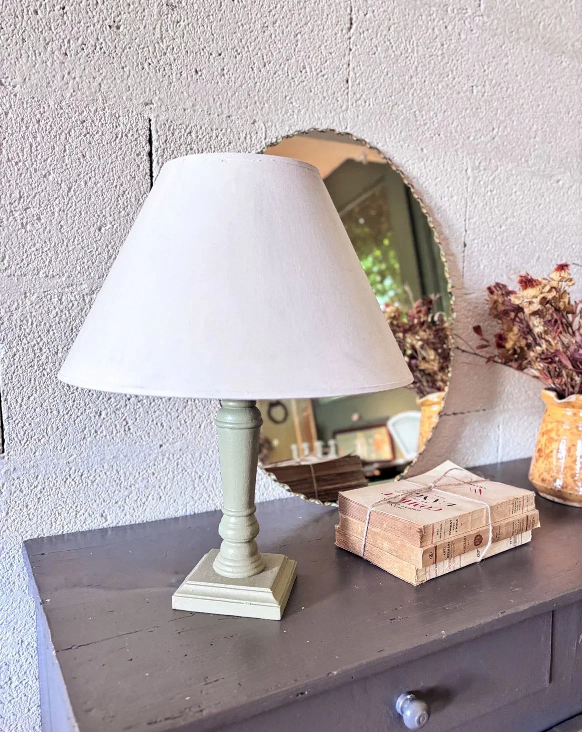 Découvrez notre lampe à poser ancienne des années 60, un véritable objet de caractère qui apportera une touche vintage à votre intérieur. Son pied en bois peint en vert chaleureux, associé à un abat-jour en toile sobre, crée une ambiance douce et accueillante. À noter que cette lampe est vendue sans ampoule. Idéale pour une table de chevet ou un coin lecture, elle saura illuminer votre espace avec charme et style. Hauteur : 39 cm Diamètre : 29,5 cm État:Occasion: Objet ayant été utilisé. Objet présentant quelques marques d'usure superficielle, ...Occasion: Objet ayant été utilisé. Objet présentant quelques marques d'usure superficielle, entièrement opérationnel et fonctionnant correctement. Il peut s'agir d'un modèle de démonstration ou d'un objet retourné en magasin après une courte période d'utilisation. les éventuelles imperfections. Marque:Debongout Type:Produit chiné Style:Contemporain Matériau:Bois Vintage:Oui