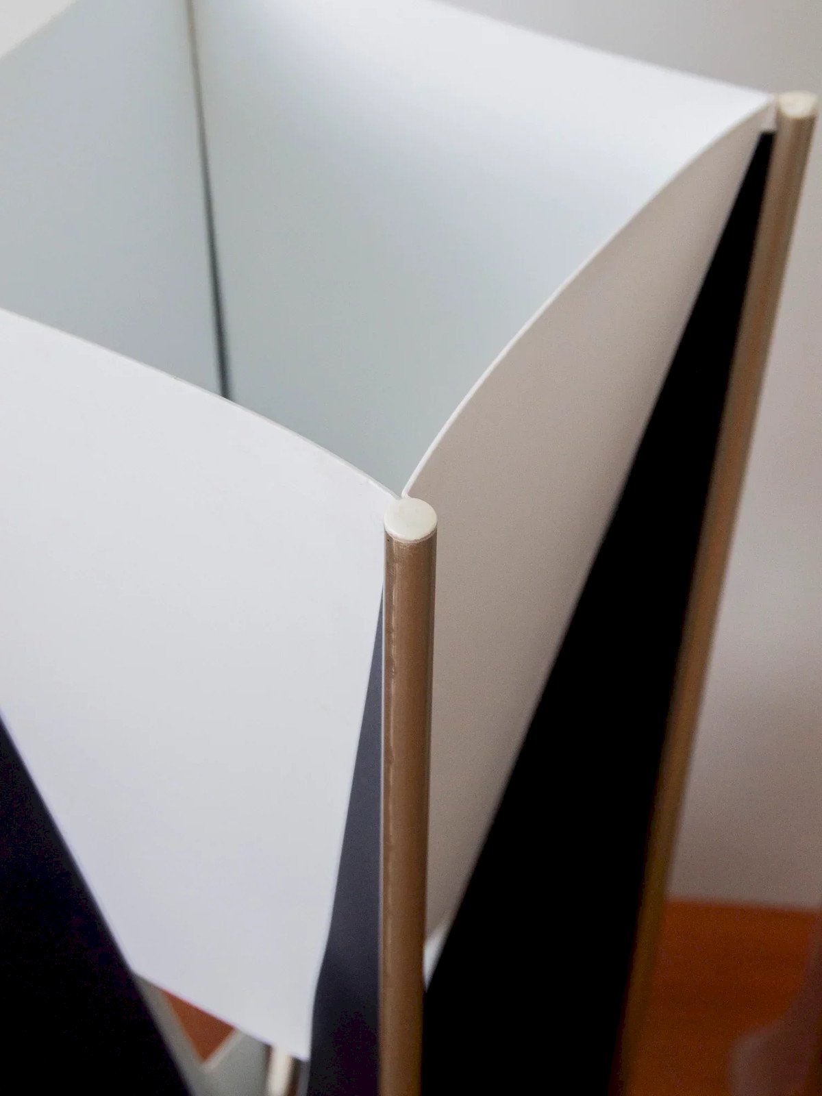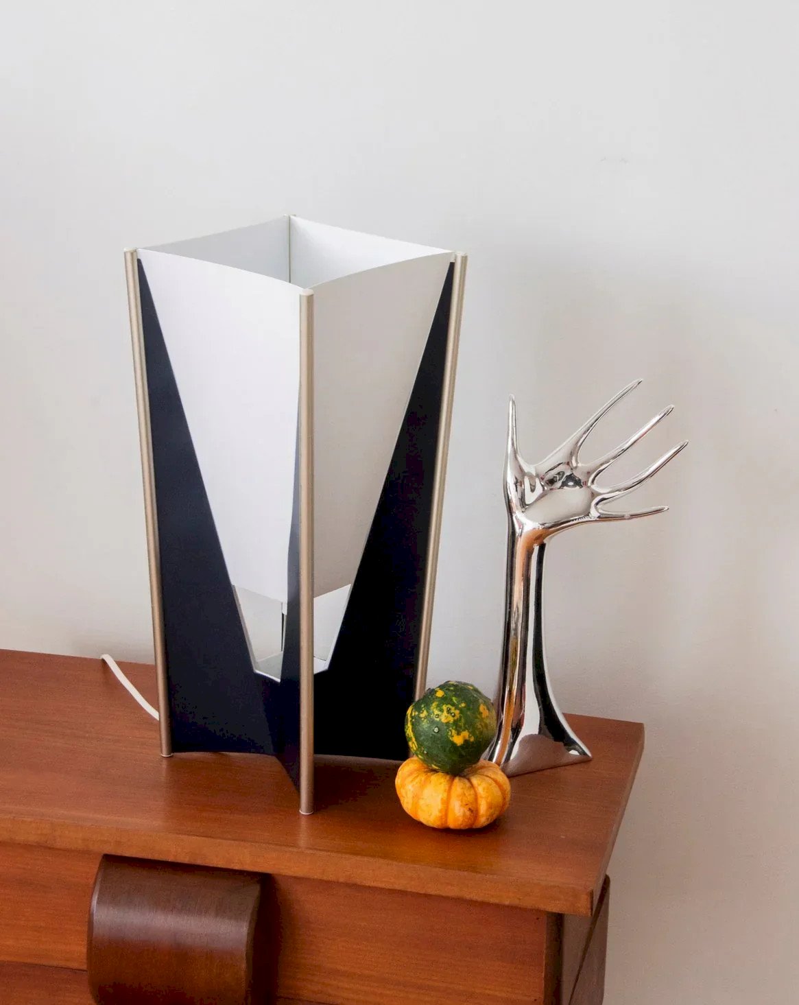Découvrez la lampe de table STILE, dessinée par Samuel Parker pour Parker Knoll dans les années 80 et fabriquée en Italie, dont la silhouette généreuse et singulière affirme un style rétro contemporain. Sa structure en aluminium associée à un abat-jour bicolore en Opalflex diffuse une lumière douce et chaleureuse, idéale pour un salon, un bureau ou une chambre. L'étiquette d'origine sur le côté atteste de son authenticité et elle fonctionne sur petit culot à vis. Un petit manque sur la pastille blanche en haut d’un pied. Longueur : 18 cm Largeur : 18 cm Hauteur : 40 cm État:Occasion: Objet ayant été utilisé. Objet présentant quelques marques d'usure superficielle, ...Occasion: Objet ayant été utilisé. Objet présentant quelques marques d'usure superficielle, entièrement opérationnel et fonctionnant correctement. Il peut s'agir d'un modèle de démonstration ou d'un objet retourné en magasin après une courte période d'utilisation. les éventuelles imperfections. Marque:Debongout Type:Produit chiné Style:Contemporain Matériau:Aluminium Vintage:Oui