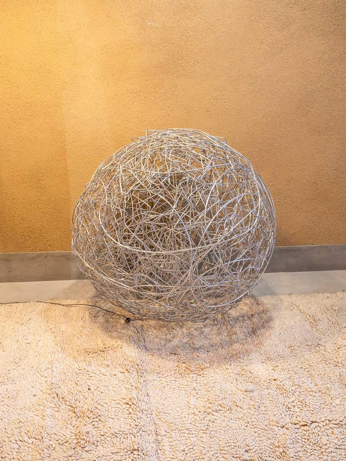 Apportez une touche d'élégance contemporaine à votre intérieur avec la lampe de sol Catellani et Smith, un chef-d'œuvre en fil de fer. Son design aérien et sculptural crée un jeu de lumière captivant, tandis que sa finition raffinée ajoute une note artistique à n'importe quelle pièce. Idéale pour les espaces modernes ou les ambiances cosy, cette lampe séduit par son esthétique unique et sa fonctionnalité. Offrez à votre décoration une pièce maîtresse qui illuminera vos soirées avec style. Exclusivité web, la rencontre se fera chez vous ! Diamètre : 70 cm État:Occasion: Objet ayant été utilisé. Objet présentant quelques marques d'usure superficielle, ...Occasion: Objet ayant été utilisé. Objet présentant quelques marques d'usure superficielle, entièrement opérationnel et fonctionnant correctement. Il peut s'agir d'un modèle de démonstration ou d'un objet retourné en magasin après une courte période d'utilisation. les éventuelles imperfections. Marque:Debongout Type:Produit chiné Vintage:Oui Style:Contemporain