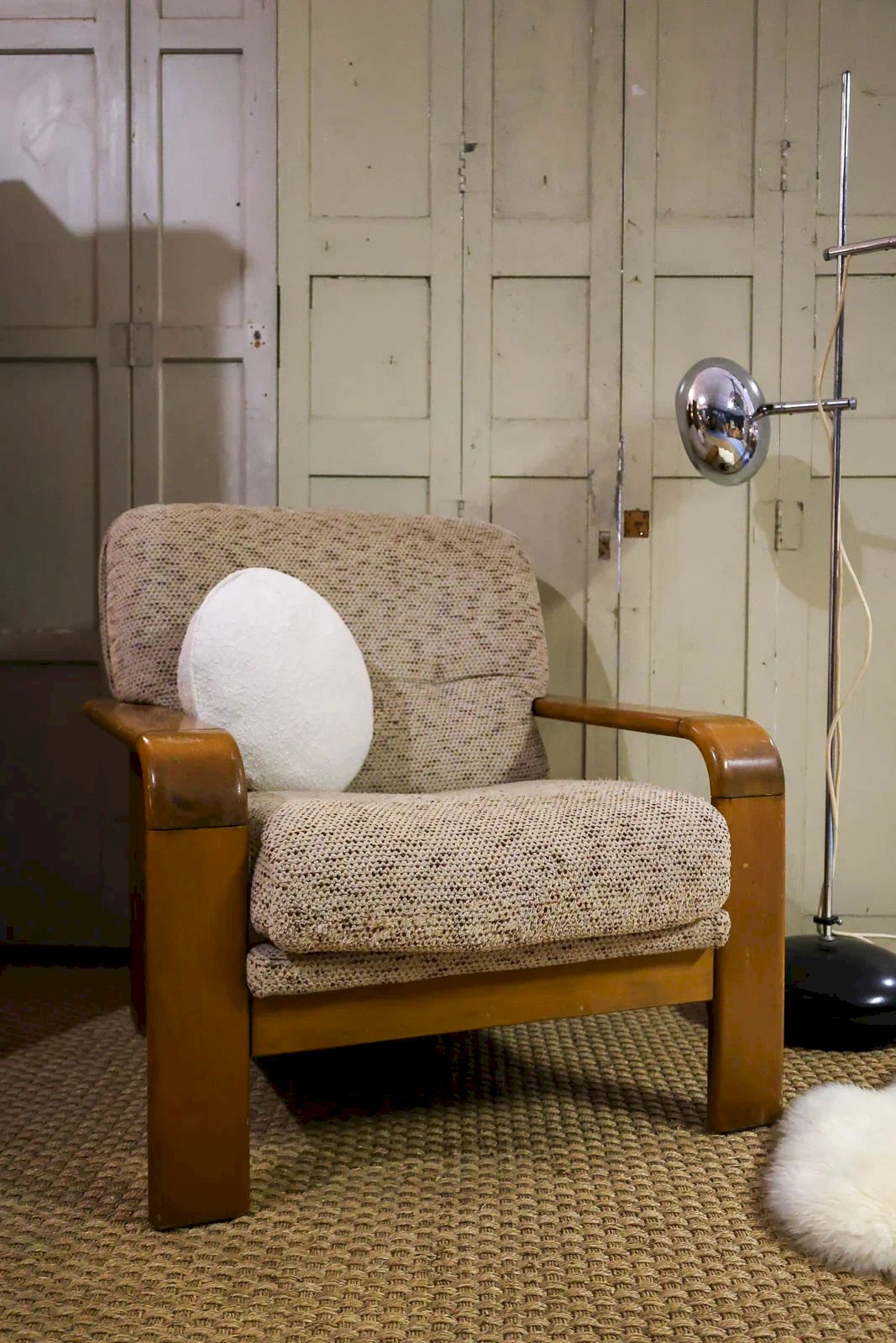 Sublimez votre intérieur avec ce lampadaire des années 70, qui marie un pied en acier noir élancé à des globes chromés au design graphique et modulable. Pensé pour diffuser une lumière douce dans un salon, un coin lecture ou une entrée, il joue sur les proportions avec un socle discret et une présence verticale maîtrisée. Le chrome apporte une allure contemporaine tandis que l'ajustement des hauteurs des globes permet de varier l'intensité et la composition lumineuse. Chrome légèrement piqueté sur la boule supérieure. Hauteur : 155 cm Diamètre du socle : 32 cm État:Occasion: Objet ayant été utilisé. Objet présentant quelques marques d'usure superficielle, ...Occasion: Objet ayant été utilisé. Objet présentant quelques marques d'usure superficielle, entièrement opérationnel et fonctionnant correctement. Il peut s'agir d'un modèle de démonstration ou d'un objet retourné en magasin après une courte période d'utilisation. les éventuelles imperfections. Marque:Debongout Type:Produit chiné Vintage:Oui Style:Contemporain