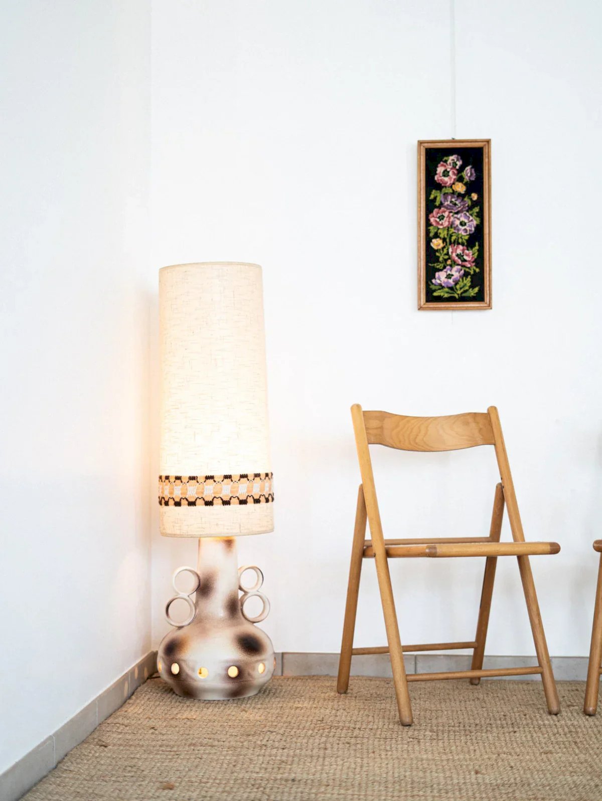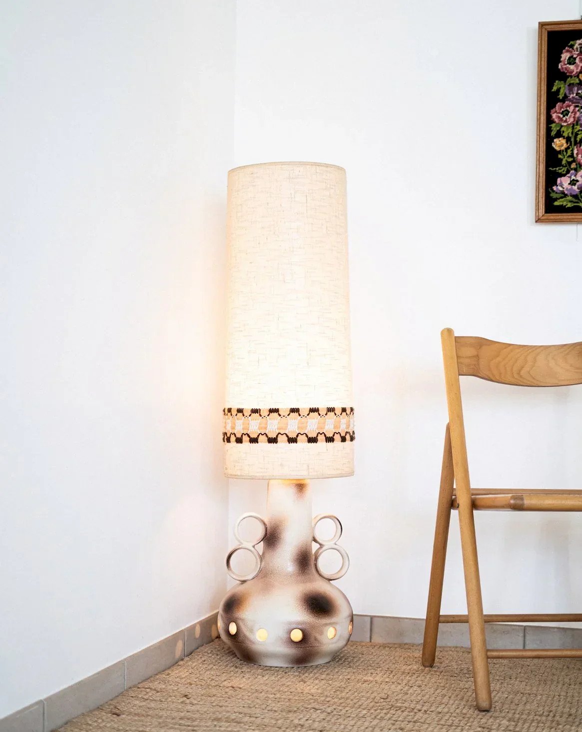 Élevez le style de votre intérieur avec ce lampadaire en céramique émaillée, emblématique des années 70 et originaire de West Germany. Son abat-jour en laine tissée, orné d'un bandeau graphique, diffuse une lumière chaleureuse tout en ajoutant une touche rétro au décor. La conception unique avec une ouverture circulaire sur le pied permet de laisser passer la lumière, créant ainsi une atmosphère accueillante et artistique. Un véritable incontournable pour les amateurs de design vintage. Longueur : 32 cm Largeur : 32 cm Hauteur : 121 cm État:Occasion: Objet ayant été utilisé. Objet présentant quelques marques d'usure superficielle, ...Occasion: Objet ayant été utilisé. Objet présentant quelques marques d'usure superficielle, entièrement opérationnel et fonctionnant correctement. Il peut s'agir d'un modèle de démonstration ou d'un objet retourné en magasin après une courte période d'utilisation. les éventuelles imperfections. Marque:Debongout Type:Produit chiné Vintage:Oui Style:Contemporain