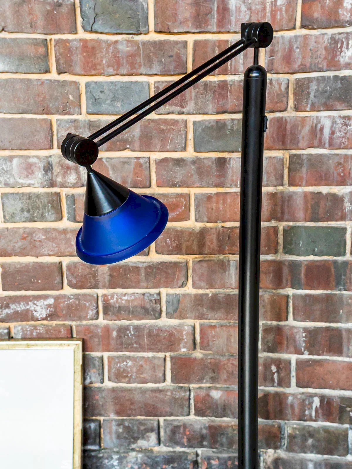 Apportez une touche vintage à votre intérieur avec le lampadaire conique d'après le designer italien Tronconi, typique des années 80. Doté d'un élégant verre bleu et d'une structure en métal noir, ce luminaire se distingue par sa hauteur et l'orientation ajustable, vous permettant de créer l'ambiance parfaite. Avec ses deux intensités de lumière, il s'adapte à toutes vos envies, tout en révélant le charme du design italien. Quelques traces d'usure sur le métal témoignent de son histoire et ne font qu'ajouter au caractère unique de cette pièce emblématique. Longueur : 25 cm Largeur : 25 cm Hauteur max : 180 cm État:Occasion: Objet ayant été utilisé. Objet présentant quelques marques d'usure superficielle, ...Occasion: Objet ayant été utilisé. Objet présentant quelques marques d'usure superficielle, entièrement opérationnel et fonctionnant correctement. Il peut s'agir d'un modèle de démonstration ou d'un objet retourné en magasin après une courte période d'utilisation. les éventuelles imperfections. Marque:Debongout Type:Produit chiné Vintage:Oui Style:Contemporain