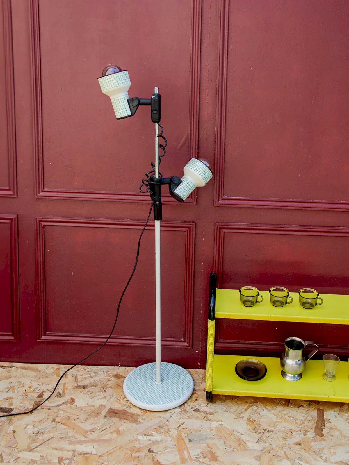 Apportez une touche d’élégance moderne à votre intérieur avec ce lampadaire en métal blanc, sublimé par un délicat quadrillage vert. Son ampoule fumée diffuse une lumière douce et chaleureuse, créant une atmosphère accueillante. Pratique et esthétique, ce lampadaire réglable en hauteur et orientable vous offre une flexibilité parfaite pour diriger la lumière où vous le souhaitez. Facile à installer grâce à sa prise plug and play, il s’intègre avec style dans tous les espaces. Hauteur : 111 cm Diamètre : 27,5 cm État:Occasion: Objet ayant été utilisé. Objet présentant quelques marques d'usure superficielle, ...Occasion: Objet ayant été utilisé. Objet présentant quelques marques d'usure superficielle, entièrement opérationnel et fonctionnant correctement. Il peut s'agir d'un modèle de démonstration ou d'un objet retourné en magasin après une courte période d'utilisation. les éventuelles imperfections. Marque:Debongout Type:Produit chiné Vintage:Oui Style:Contemporain