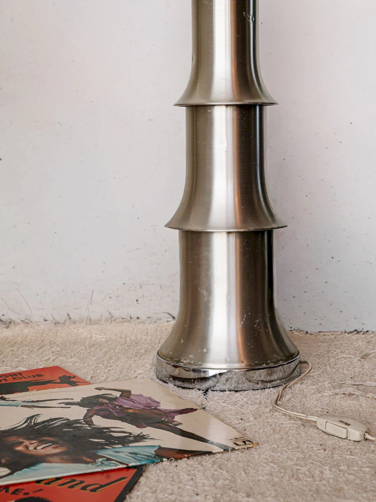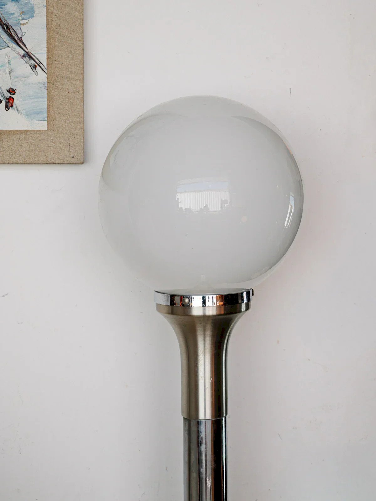 Apportez une touche d'élégance rétro à votre intérieur avec ce lampadaire emblématique des années 1970, signé par le designer Enrico Tronconi. Réalisé en métal brossé et chromé, il se distingue par son abat-jour en opaline, diffusant une lumière douce et chaleureuse. Idéal pour les espaces modernes et contemporains, ce lampadaire allie design audacieux et fonctionnalité, faisant de lui un élément incontournable pour étoffer votre décoration. Hauteur : 148 cm Diamètres : globe 30 cm base socle 20cm État:Occasion: Objet ayant été utilisé. Objet présentant quelques marques d'usure superficielle, ...Occasion: Objet ayant été utilisé. Objet présentant quelques marques d'usure superficielle, entièrement opérationnel et fonctionnant correctement. Il peut s'agir d'un modèle de démonstration ou d'un objet retourné en magasin après une courte période d'utilisation. les éventuelles imperfections. Marque:Debongout Type:Produit chiné Vintage:Oui Style:Contemporain