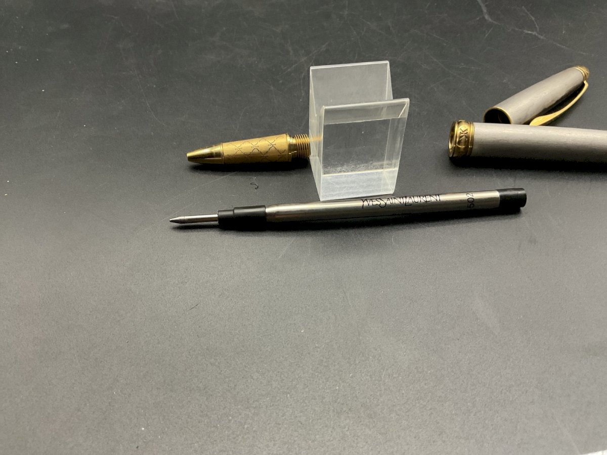 KORLOFF Stylo bille plaqué or , orné d'un diamant Trace d’usure  Cartouche d encre à changer État:Occasion: Objet ayant été porté. ...Occasion: Objet ayant été porté. les éventuelles imperfections. Couleur:Gris Marque:KORLOFF Type:Stylo Bille, Roller Sous-type:Prestige Matière:Acier