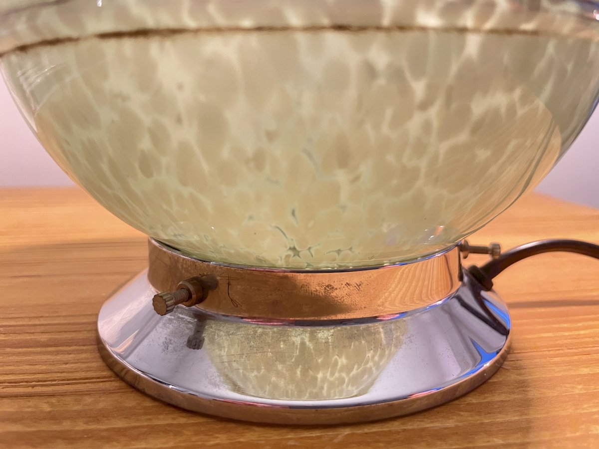 Lampe à poser Art déco Vert Métal/Verre Moucheté