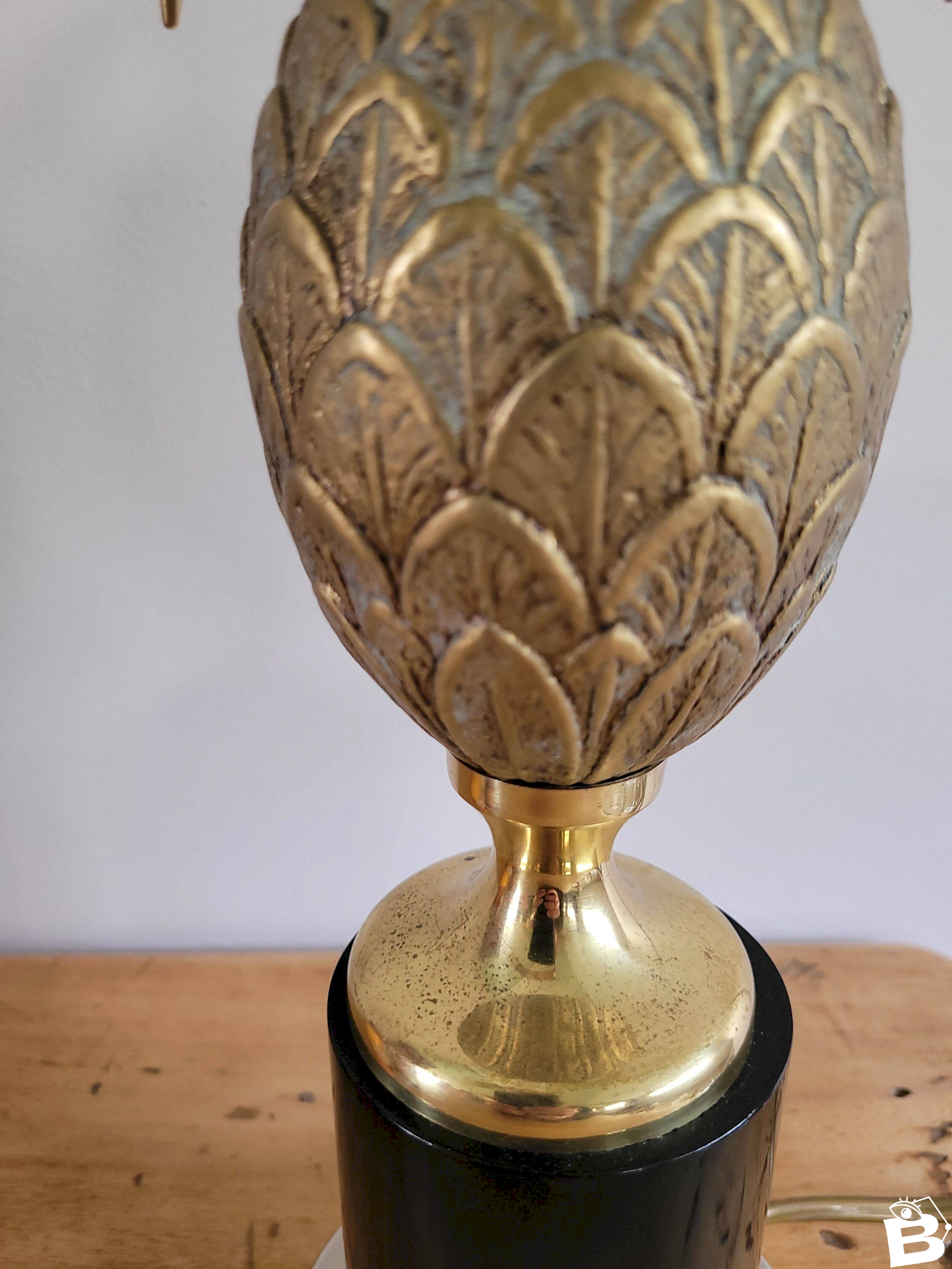 VINTAGE ANNEES 70 PIED DE LAMPE ANANAS EN BRONZE ET MARBRE DESIGN 70 CHARLES ??