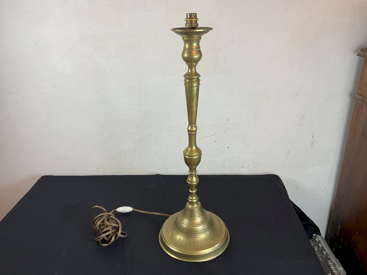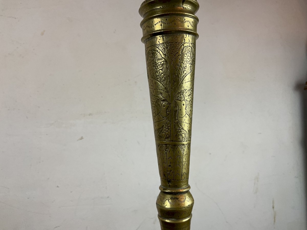 Lampe Antique Islamic Qajar Indo Persian Hookah Huqqa Base Hauteur : 63 cm Authenticité:Original Matière:Bronze