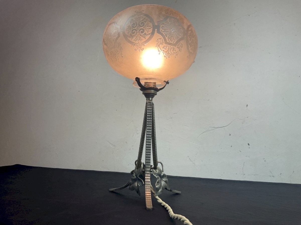LAMPE ART DÉCO EN FER FORGÉ ET GROS GLOBE EN VERRE 1930