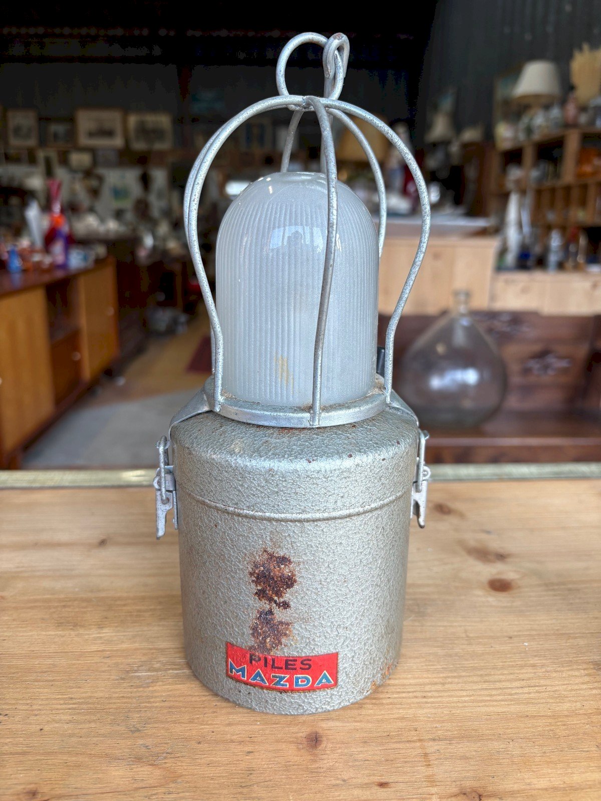 Lampe atelier vintage industrielle “Piles Mazda” années 40/50
