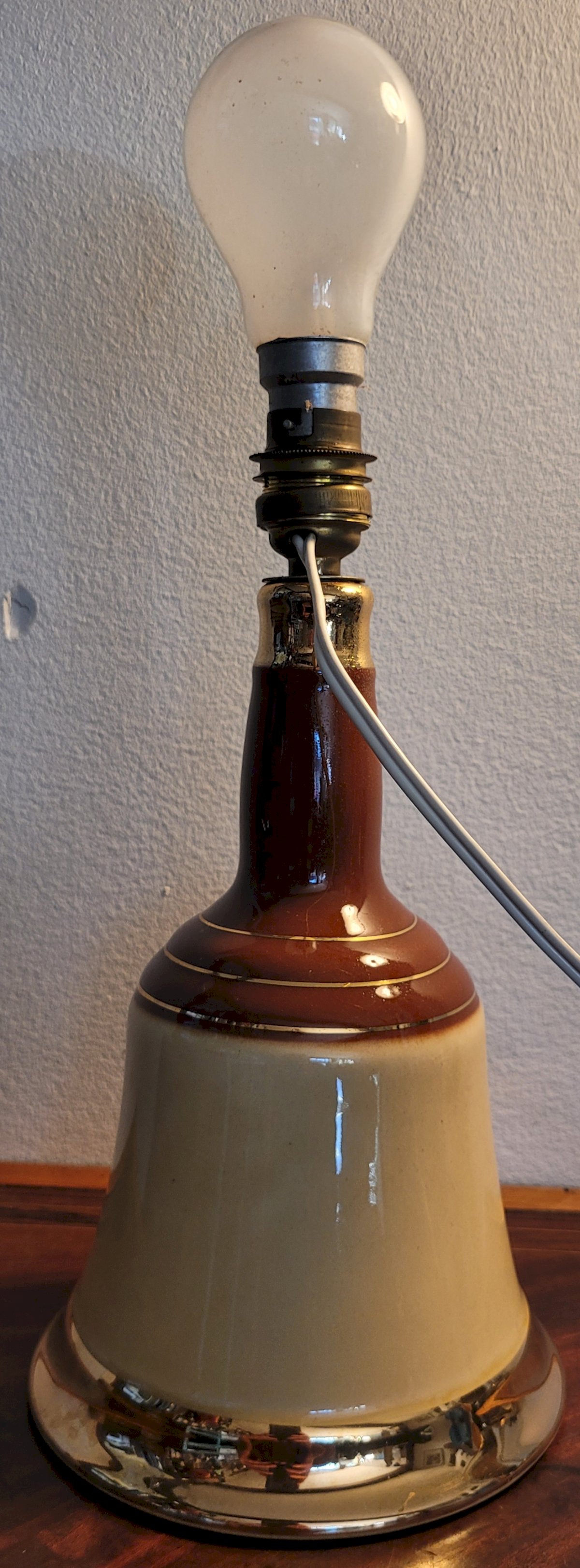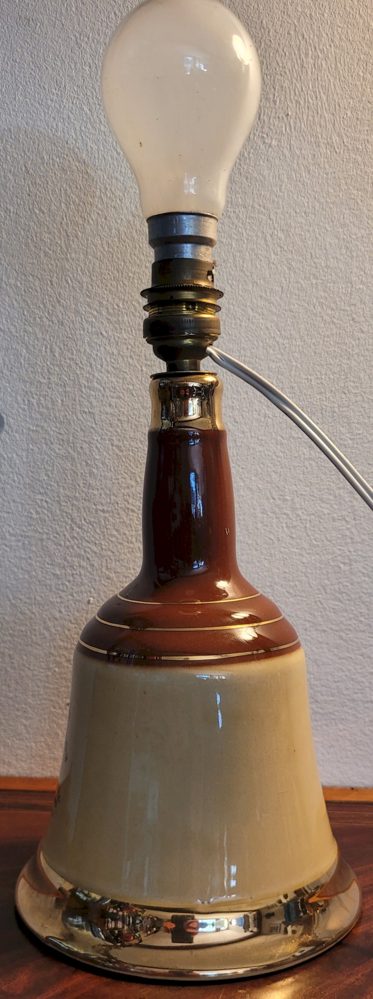 Lampe bouteille Bell's Scotch whisky en faïence 1973 - 1990 Vintage Beige
