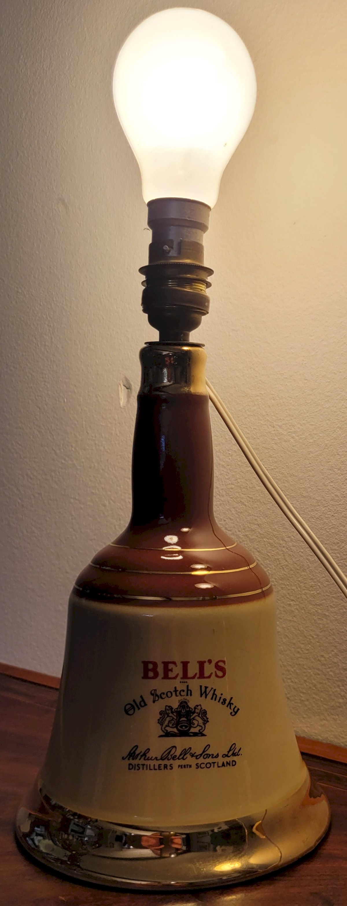 Lampe bouteille Bell's Scotch whisky en faïence 1973 - 1990.