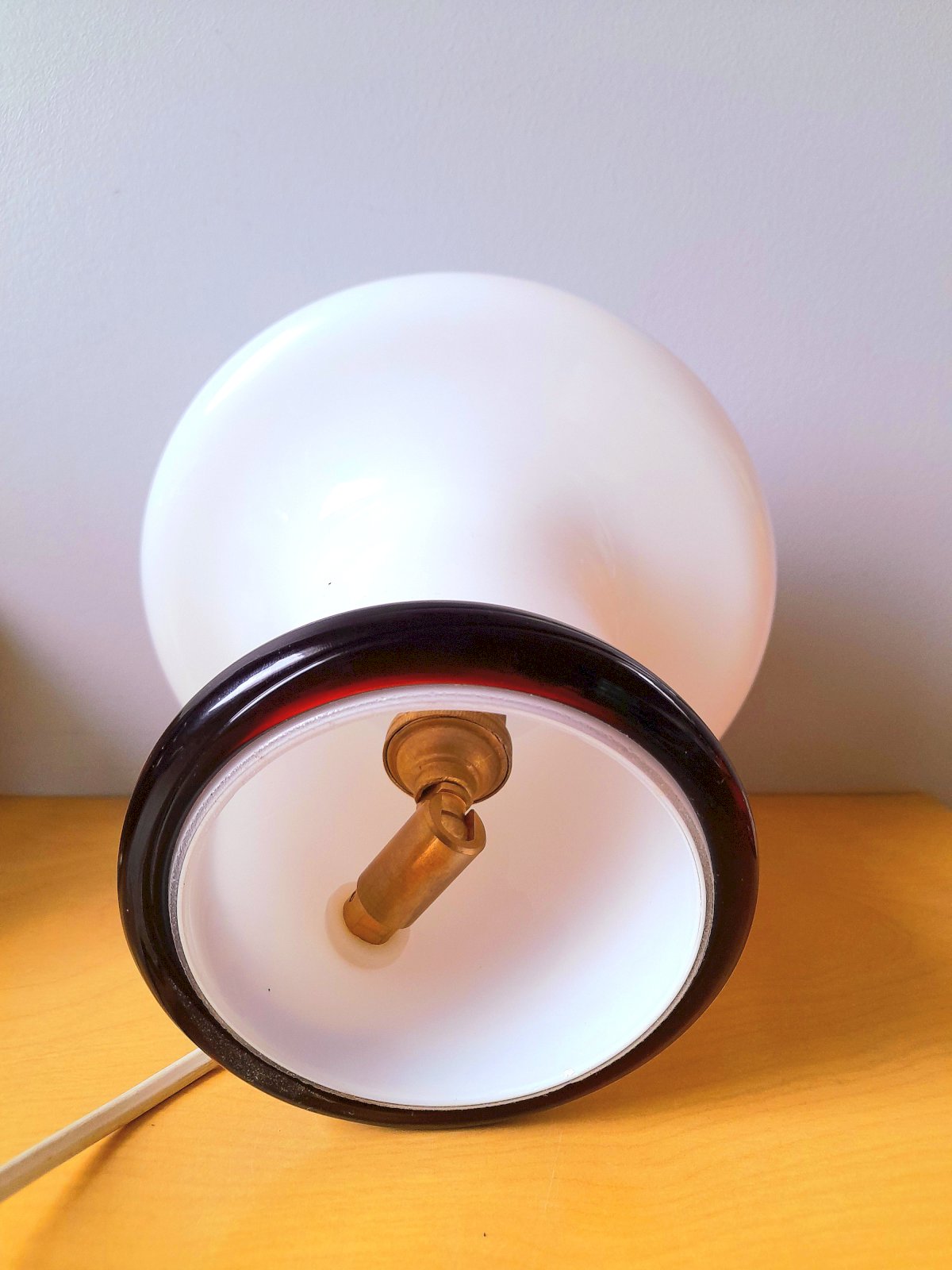 Élégante lampe champignon en verre soufflé de Murano des années 1970. Son design intemporel et sa lumière douce créent une ambiance chaleureuse dans n'importe quelle pièce. Parfait état, une petit défaut d origine sur le dessus