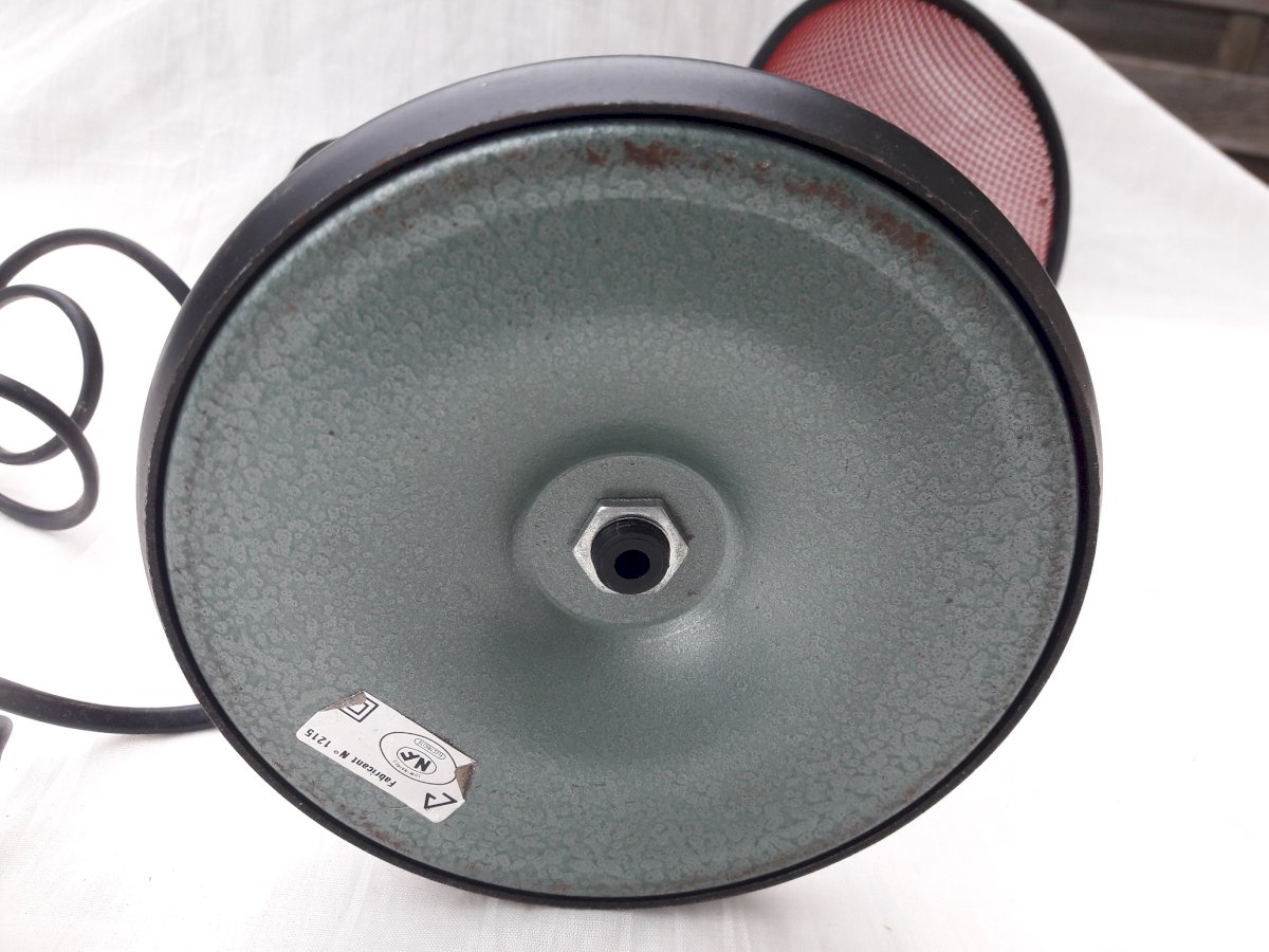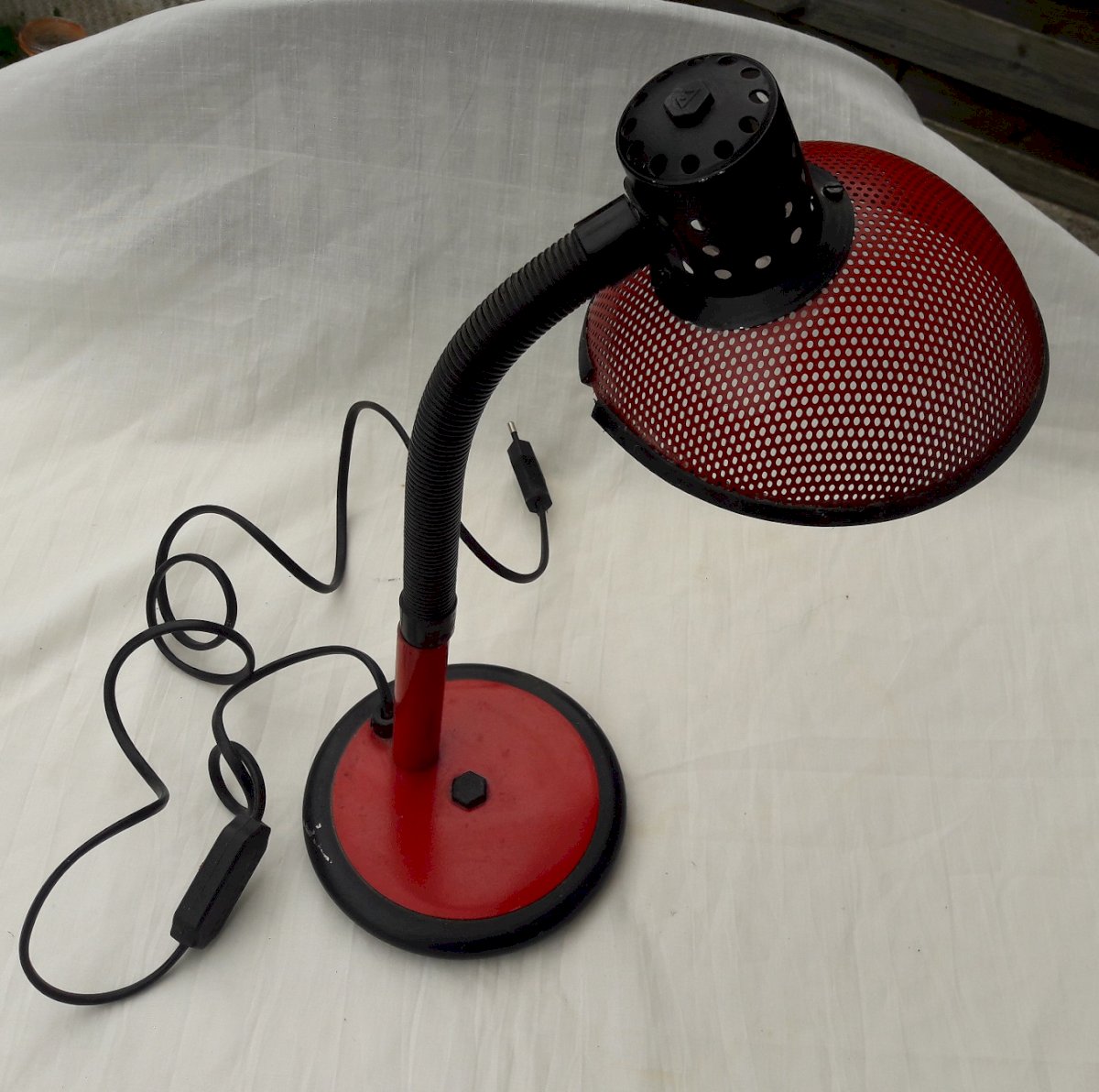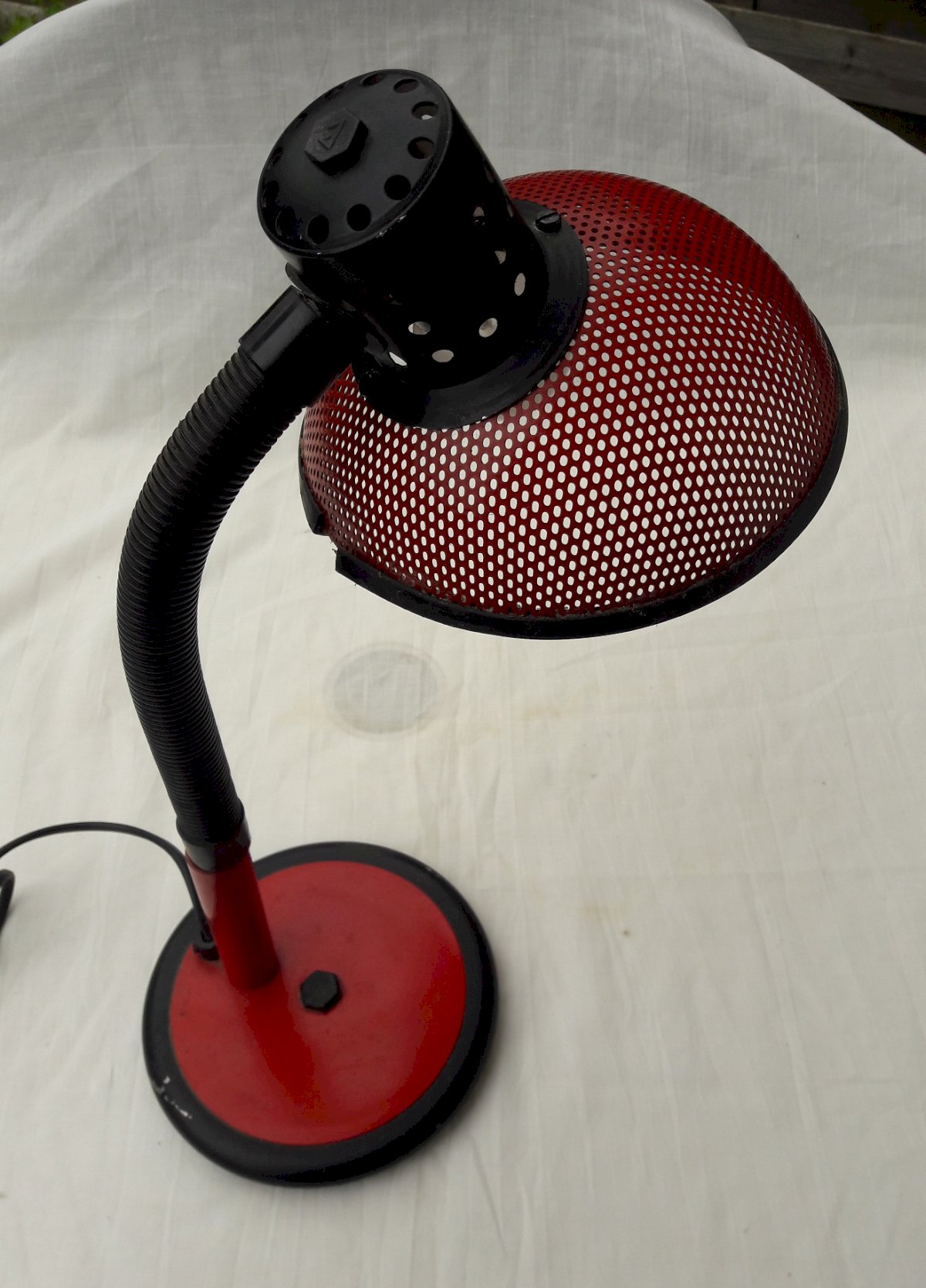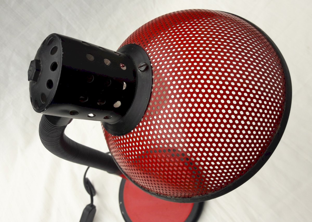 Lampe de bureau rouge, abat-jour en métal perforé, des années 80.