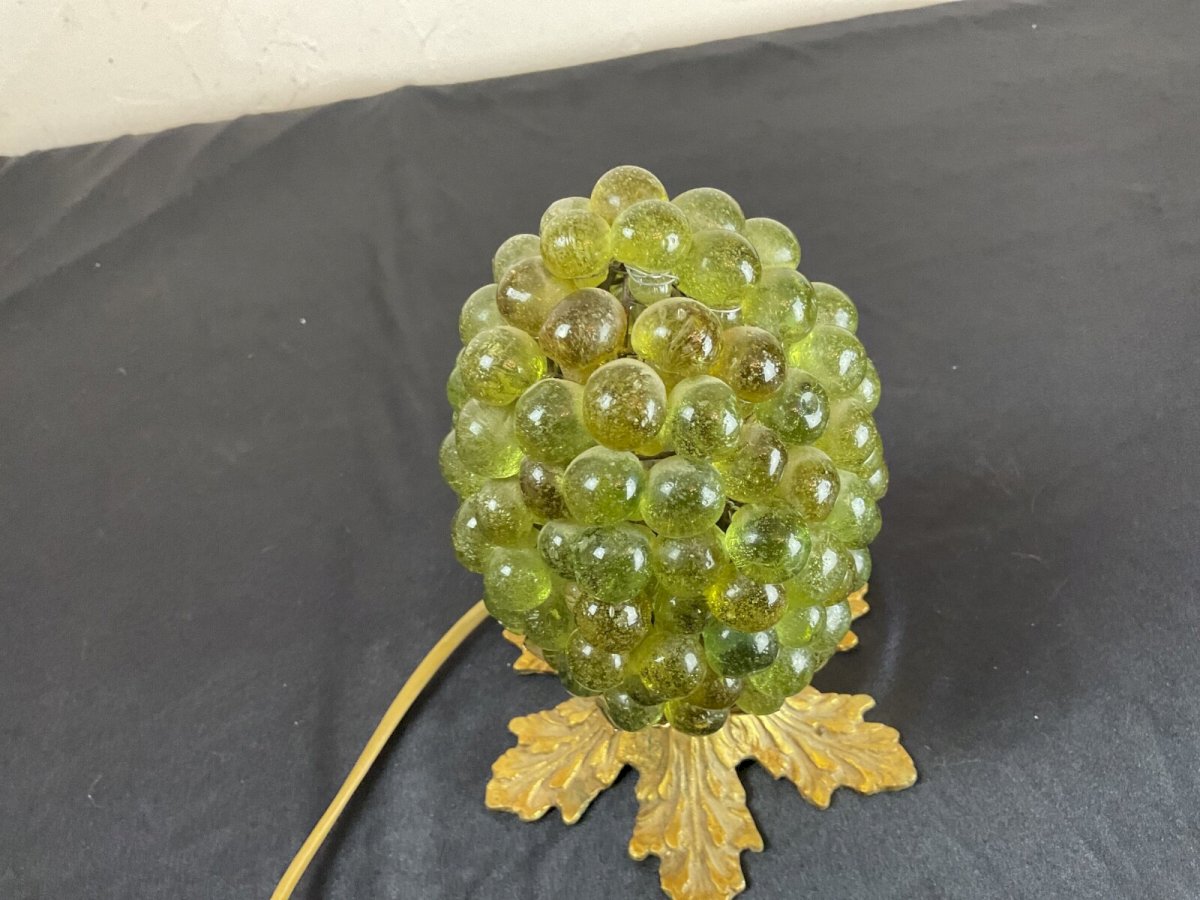 Lampe de comptoir Grappe En Verre Murano Avec Pied Bronze feuille de chêne  Bonne état générale  Hauteur : 19 cm Diamètre : 15 cm Type:Pied de lampe Sous-type:Salon Matière:Verre Bronze Type d'éclairage:Standard Puissance maxi (Watts):40