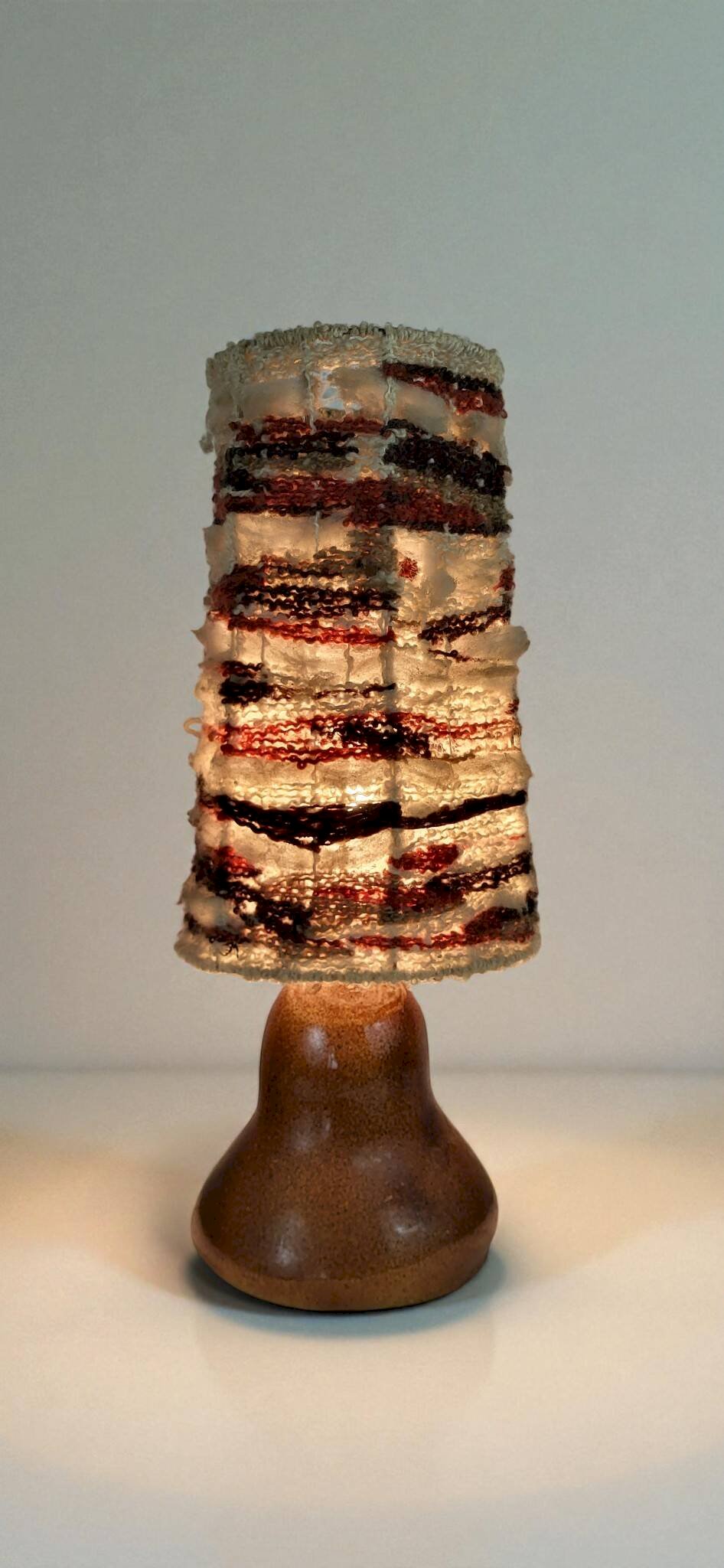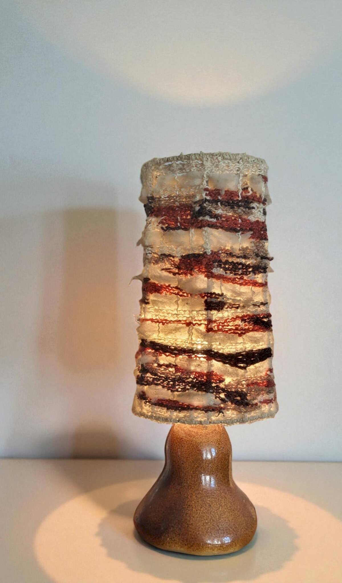 Lampe en céramique des années 1970 / Abat jour en laine d'origine.Hauteur totale 64 cm.Diamètre base 21 cm.Défauts de production du pied de lampe (production artisanale).La lampe est en bon état avec traces d'usage et d'ancienneté sur un objet ancien.Emballage soigné et livraison rapide.