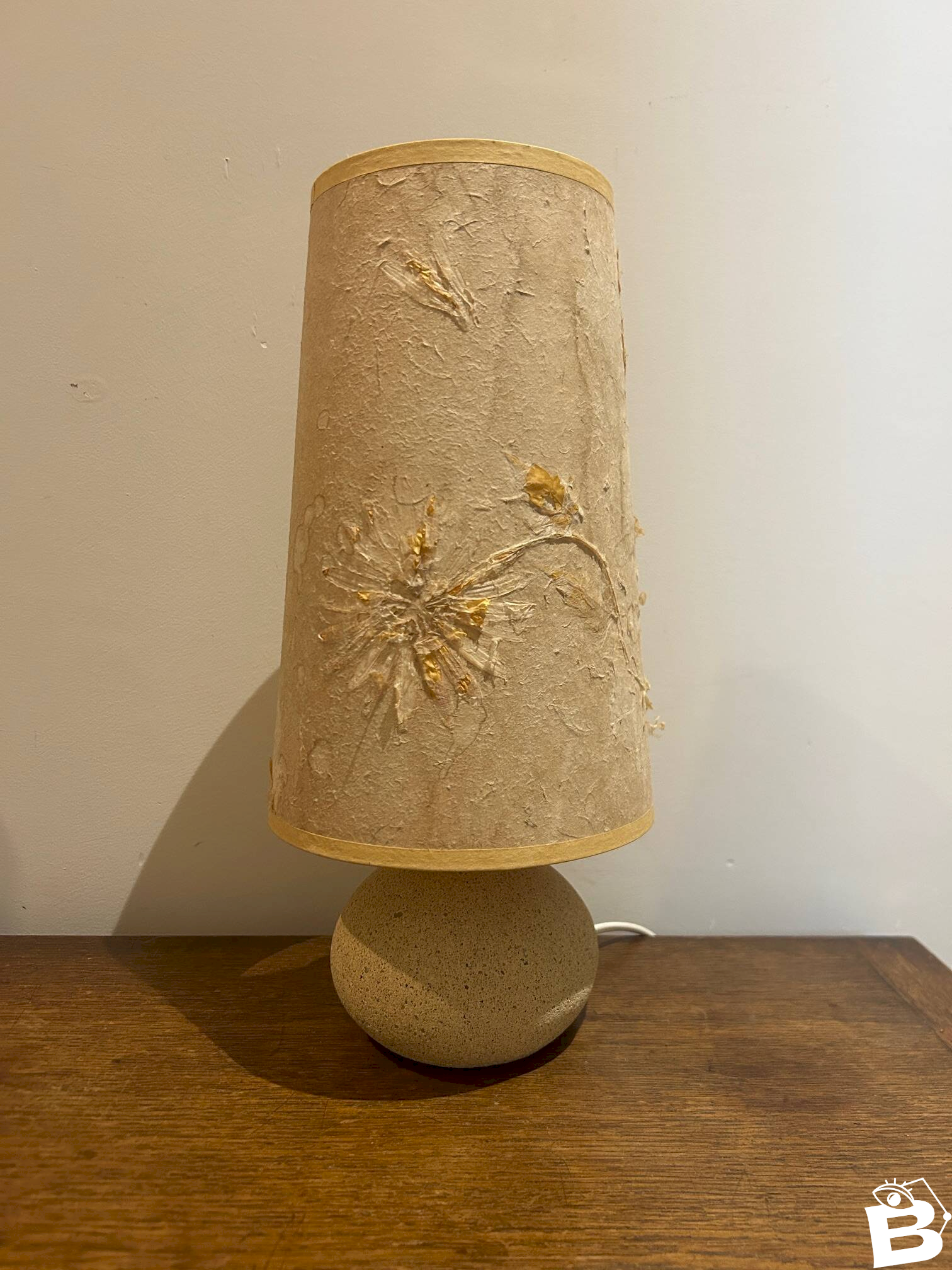 lampe en pierre avec son abat jour en fleurs séchées 1970 Vintage Beige