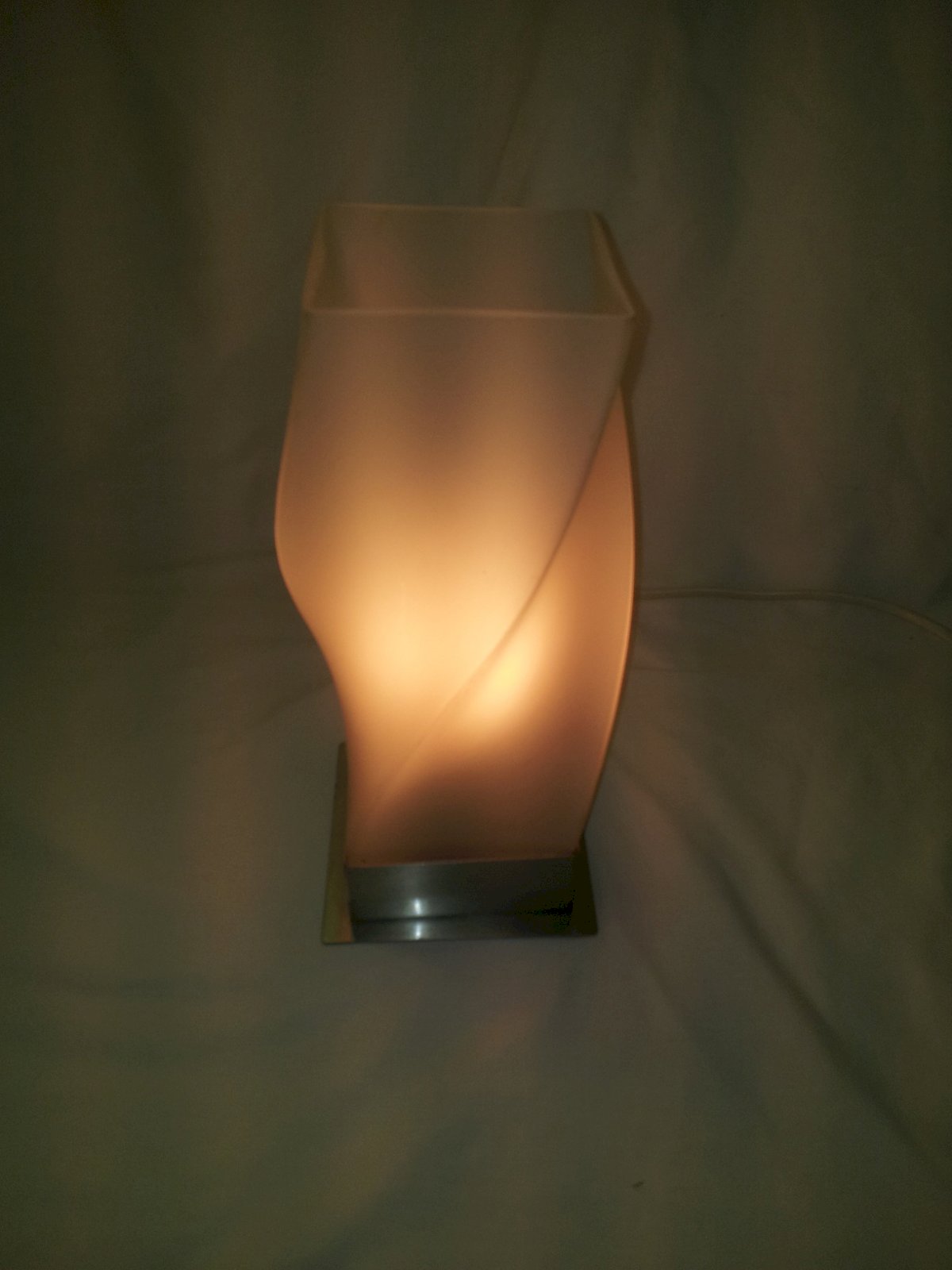 Lampe en verre opaque avec une base carrée en métal, des années 80.