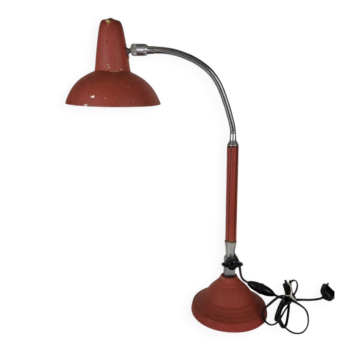 Lampe industrielle flexible 1950 Classique Rouge Métal
