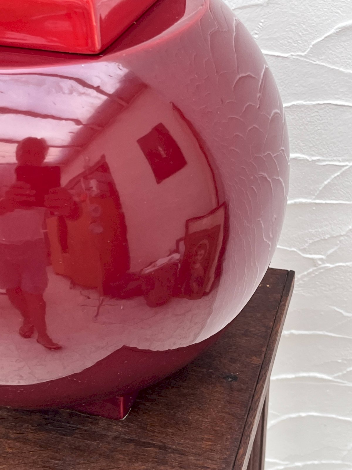 Cette lampe de table rouge vif est dotée d'une base en céramique brillante qui apporte une touche de couleur et d'élégance à n'importe quelle pièce.