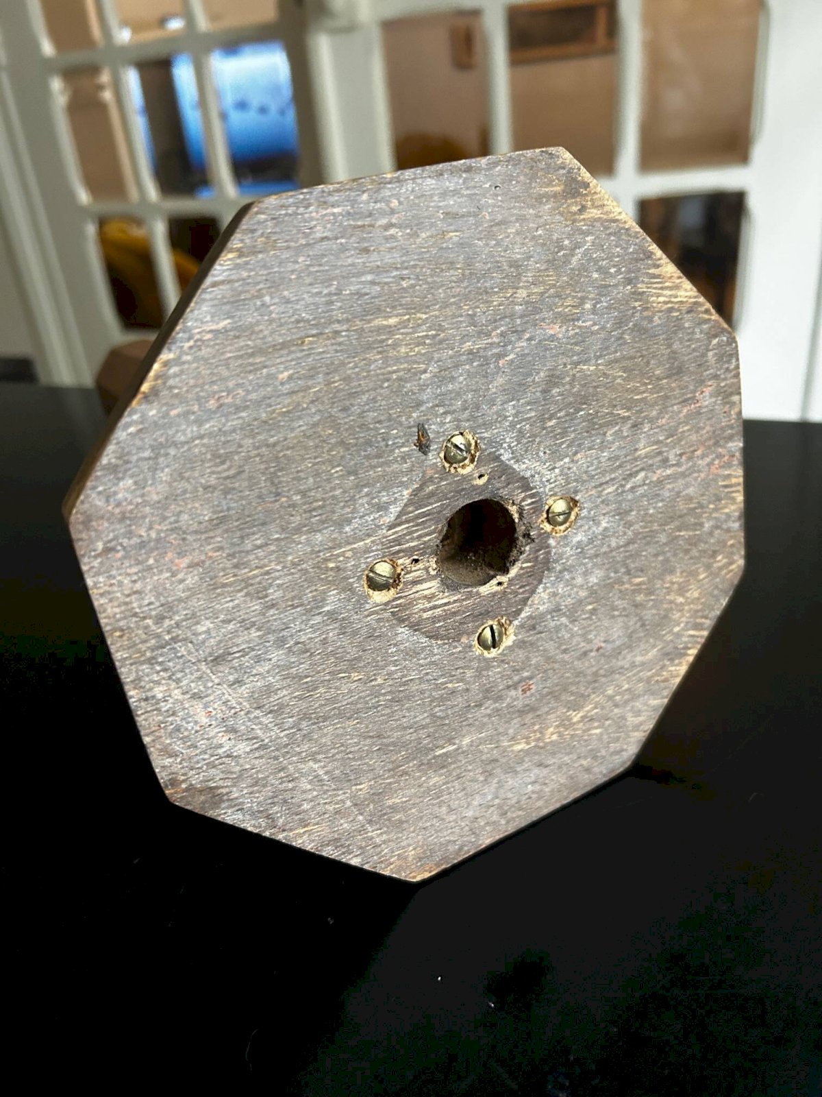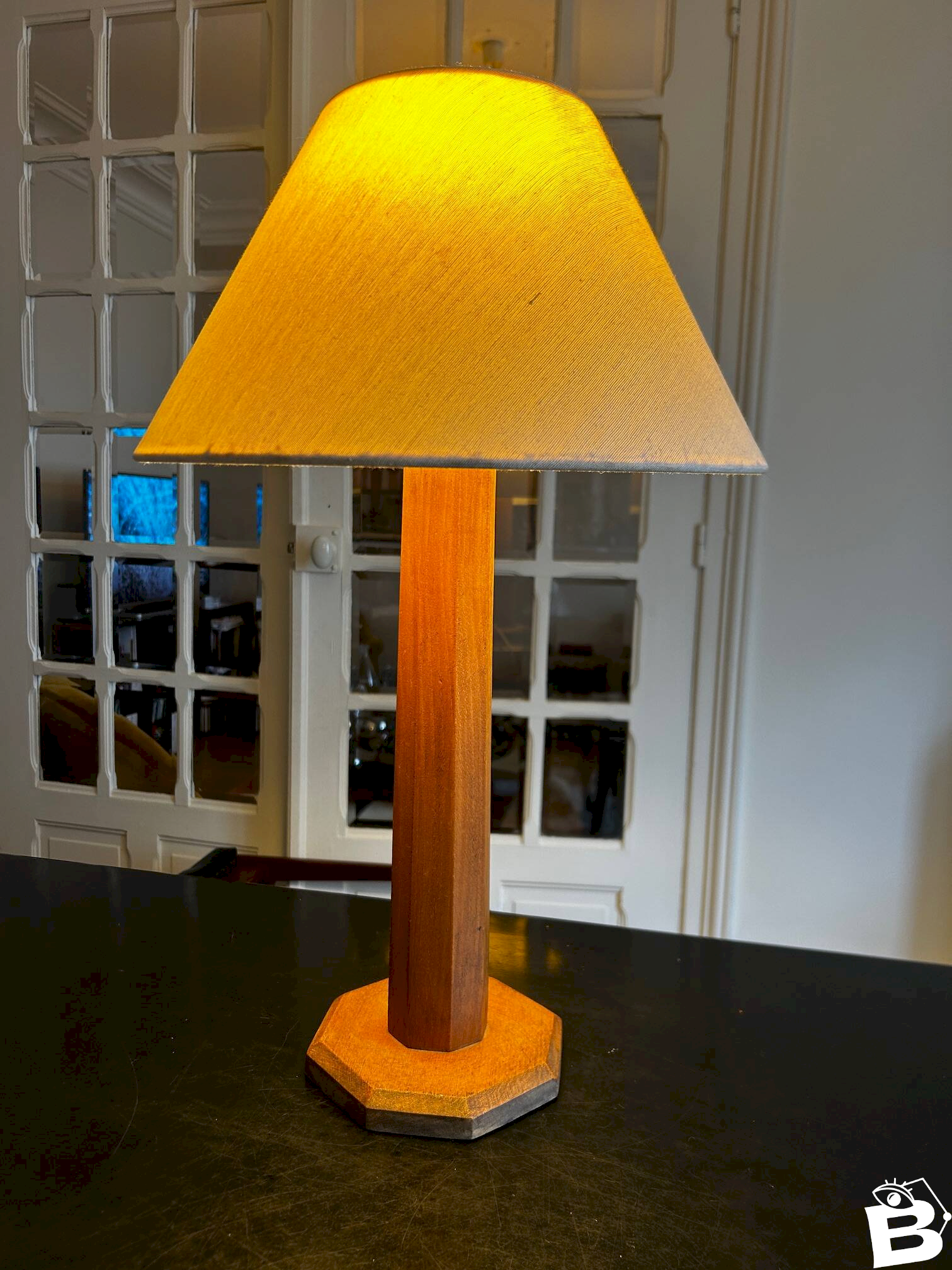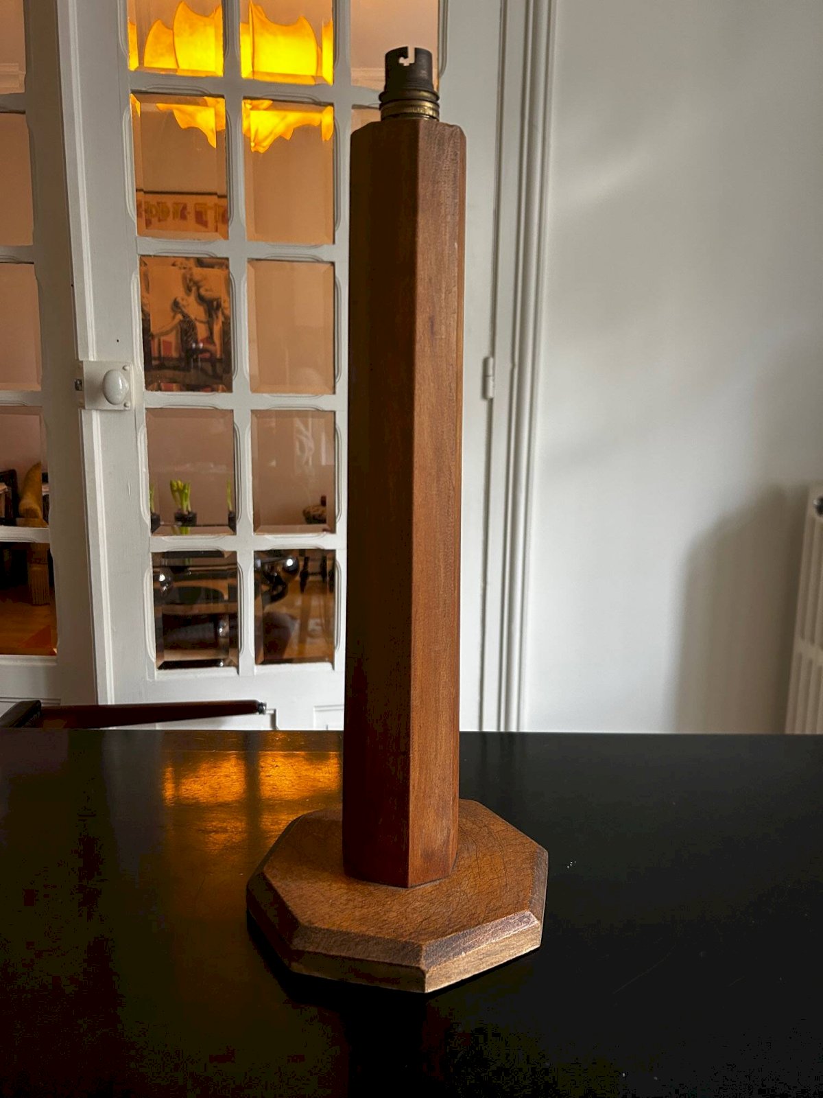 Lampe moderniste en bois sculpté des années 30/40.Base hauteur 45cm diamétre 17cm.