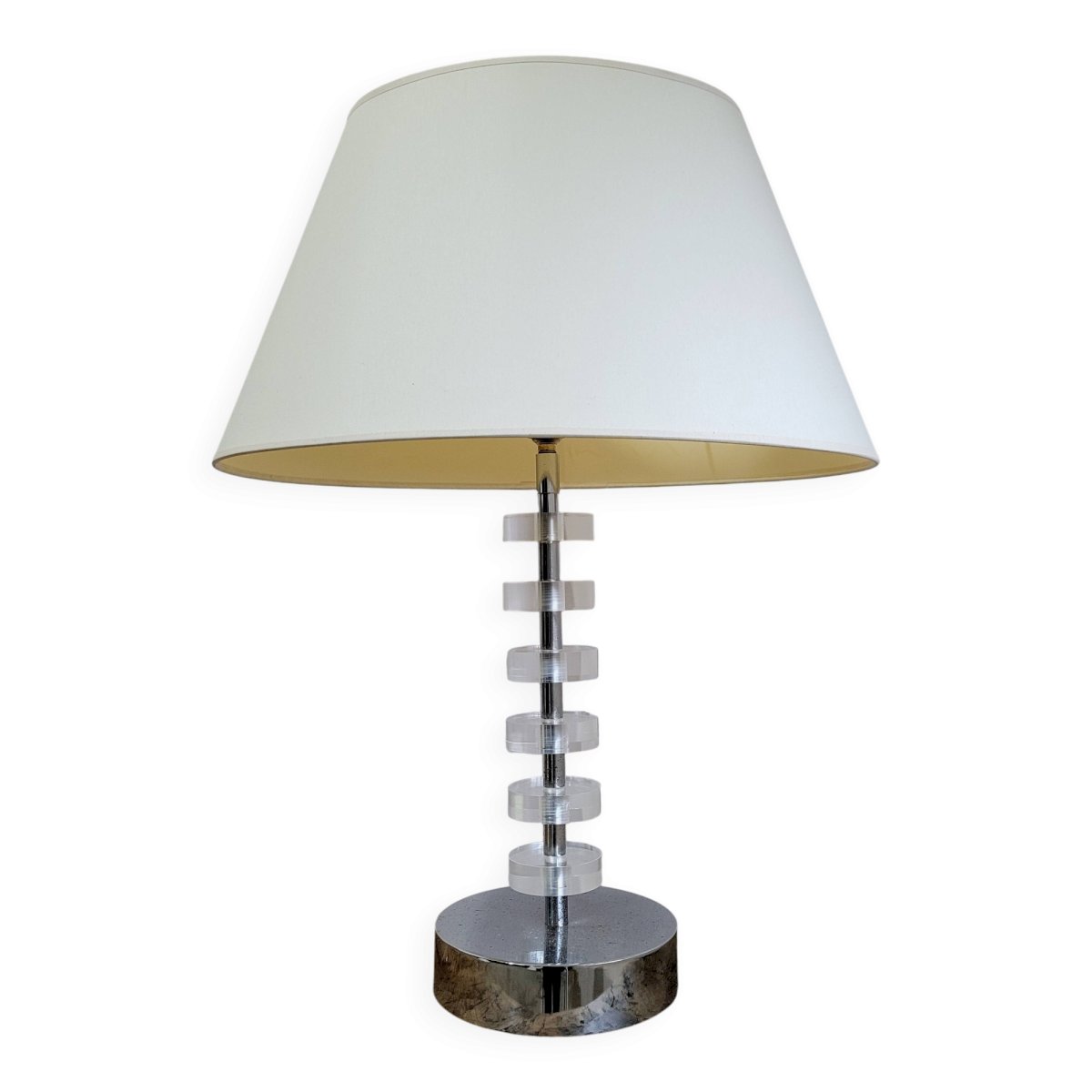 Lampe moderniste en plexiglas et chrome XXe Contemporain Transparent Plexiglass