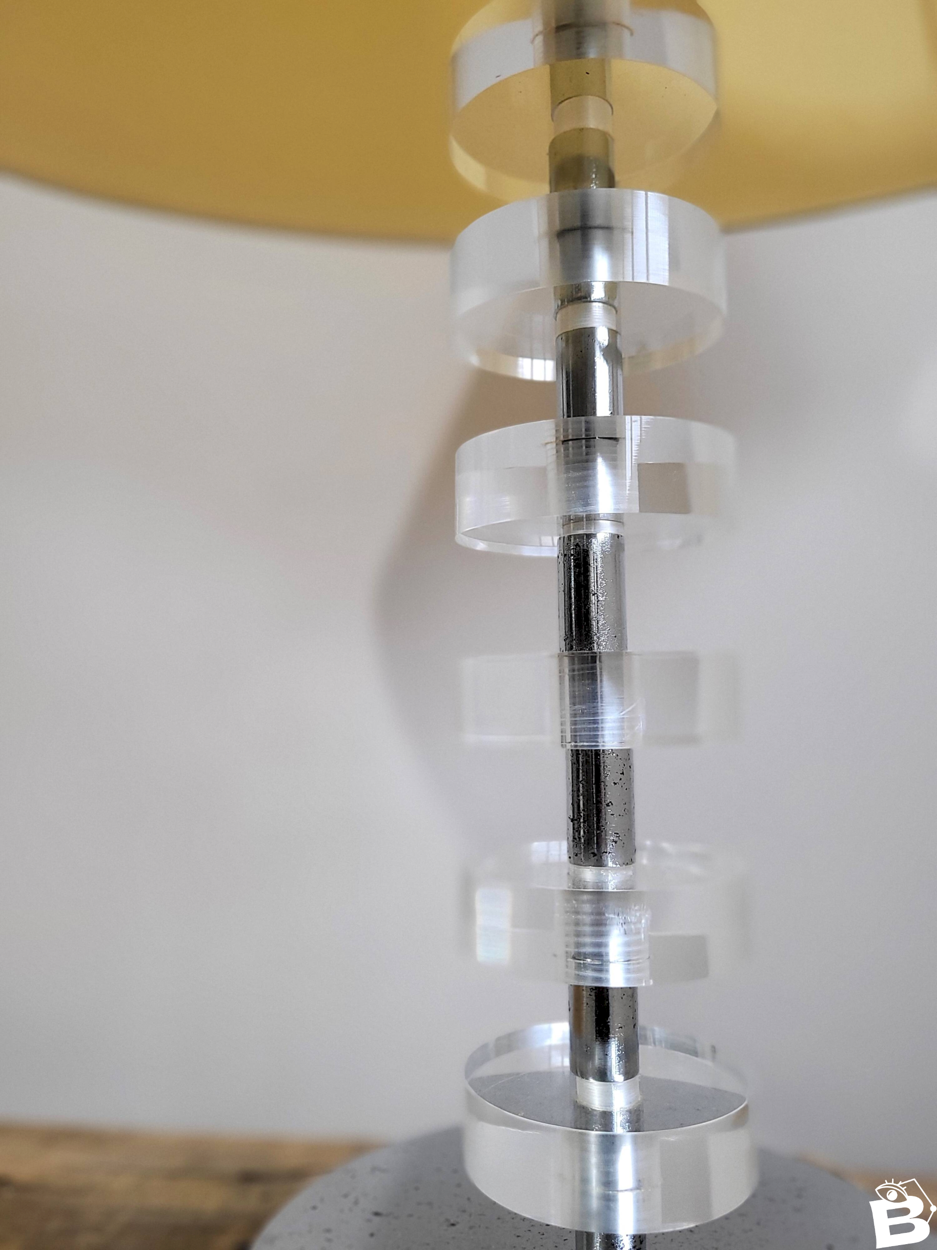 Lampe vintage chrome et plexiglas couleur ambre design Raak circa 70