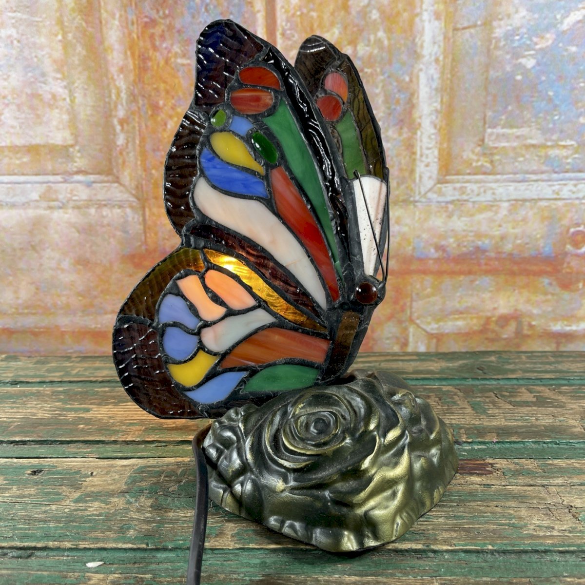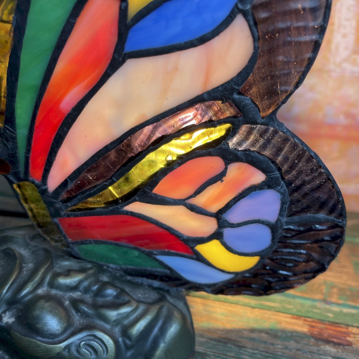 Lampe Papillon en Vitrail – Verre Coloré Soudé à l’Étain – Style Tiffany